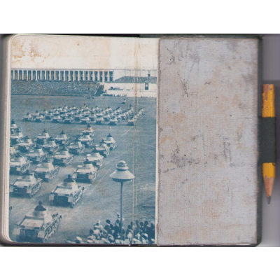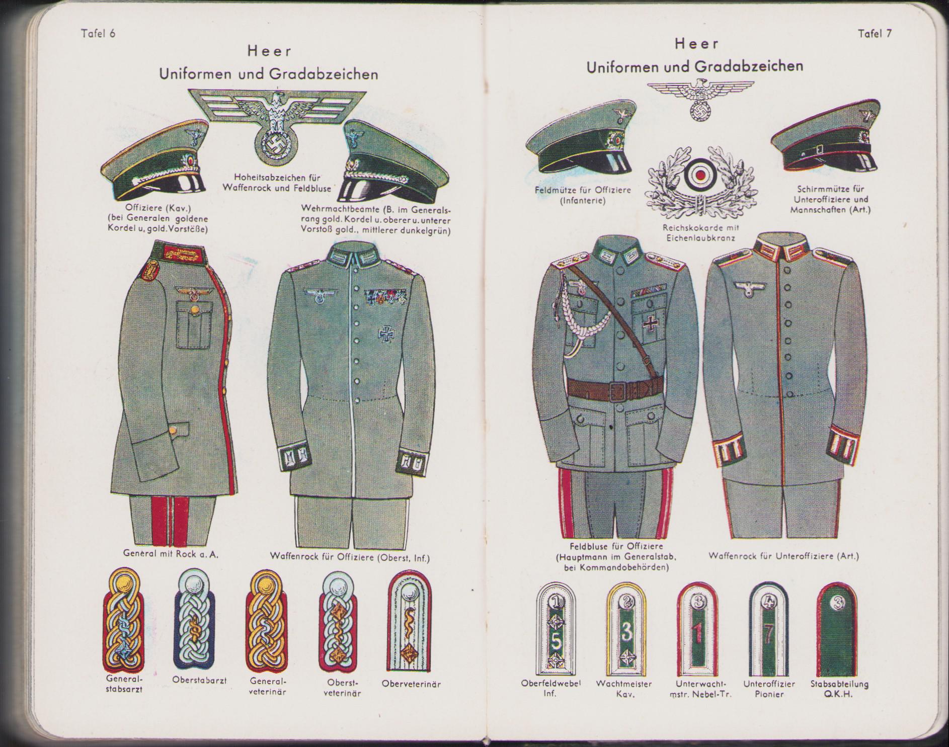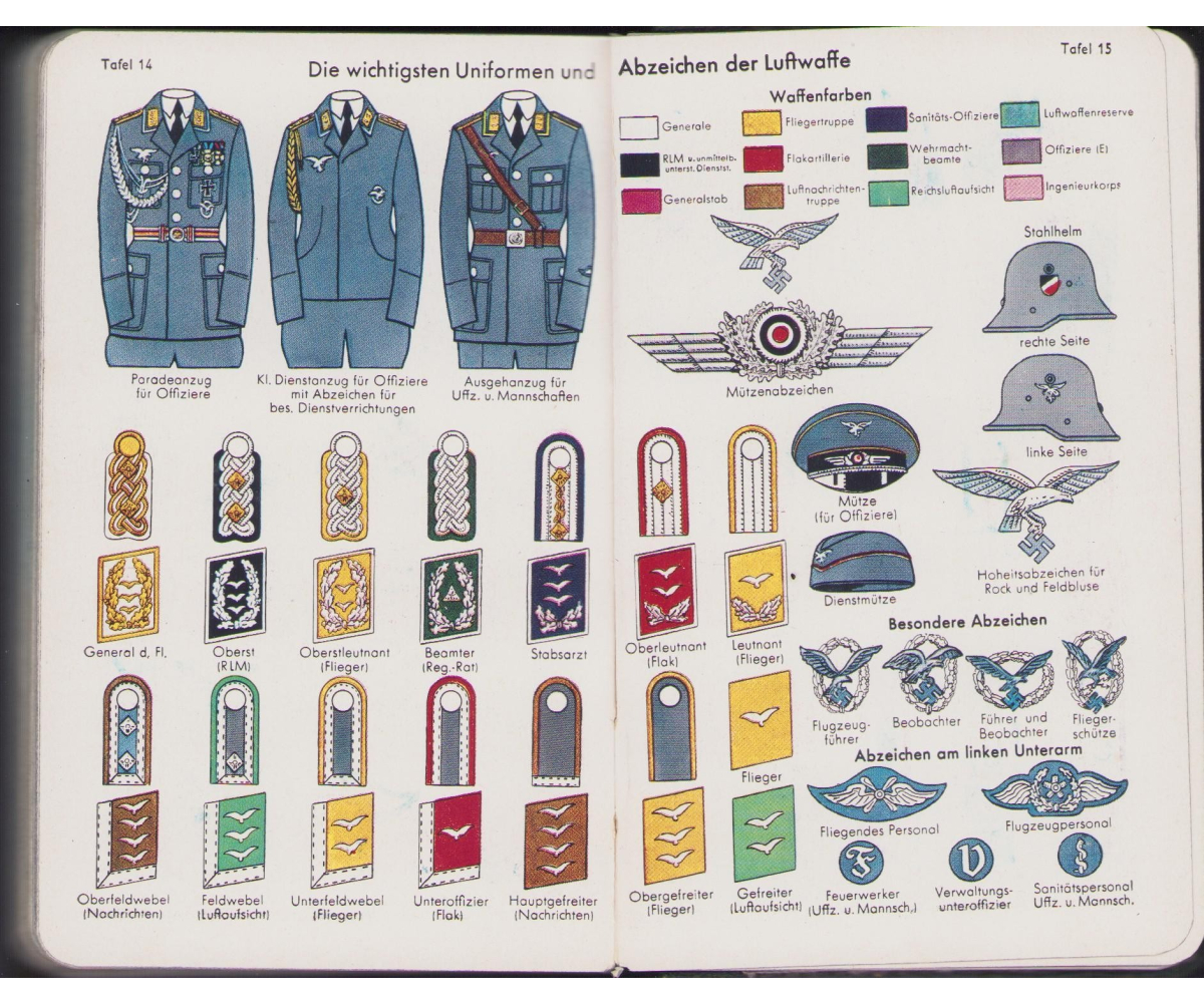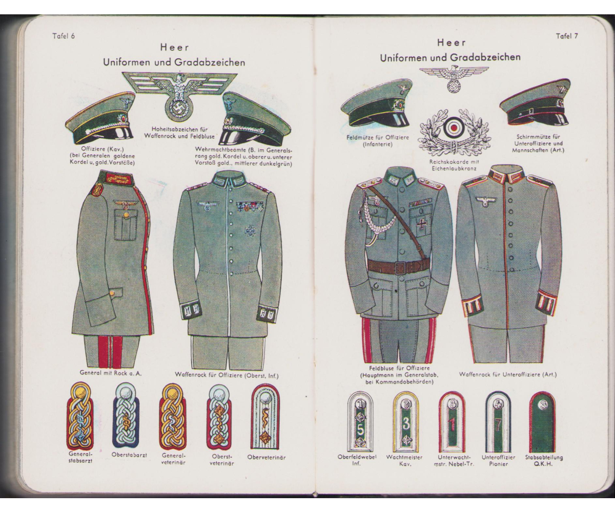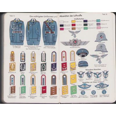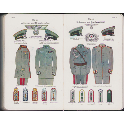 The kalender shows overall normal signs of wear. It's solid and complete with all pages. Contains in the back 30 pages, in color, about all the uniforms and insignia in the Wehrmacht.