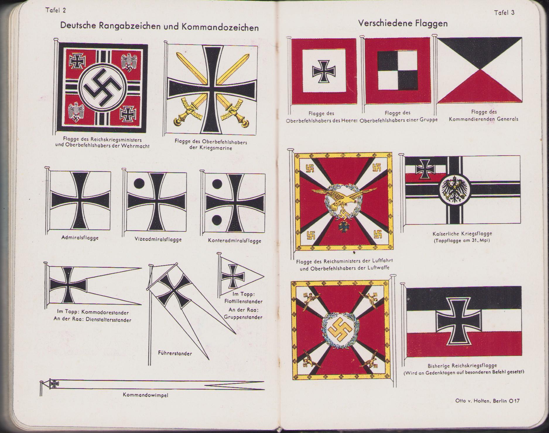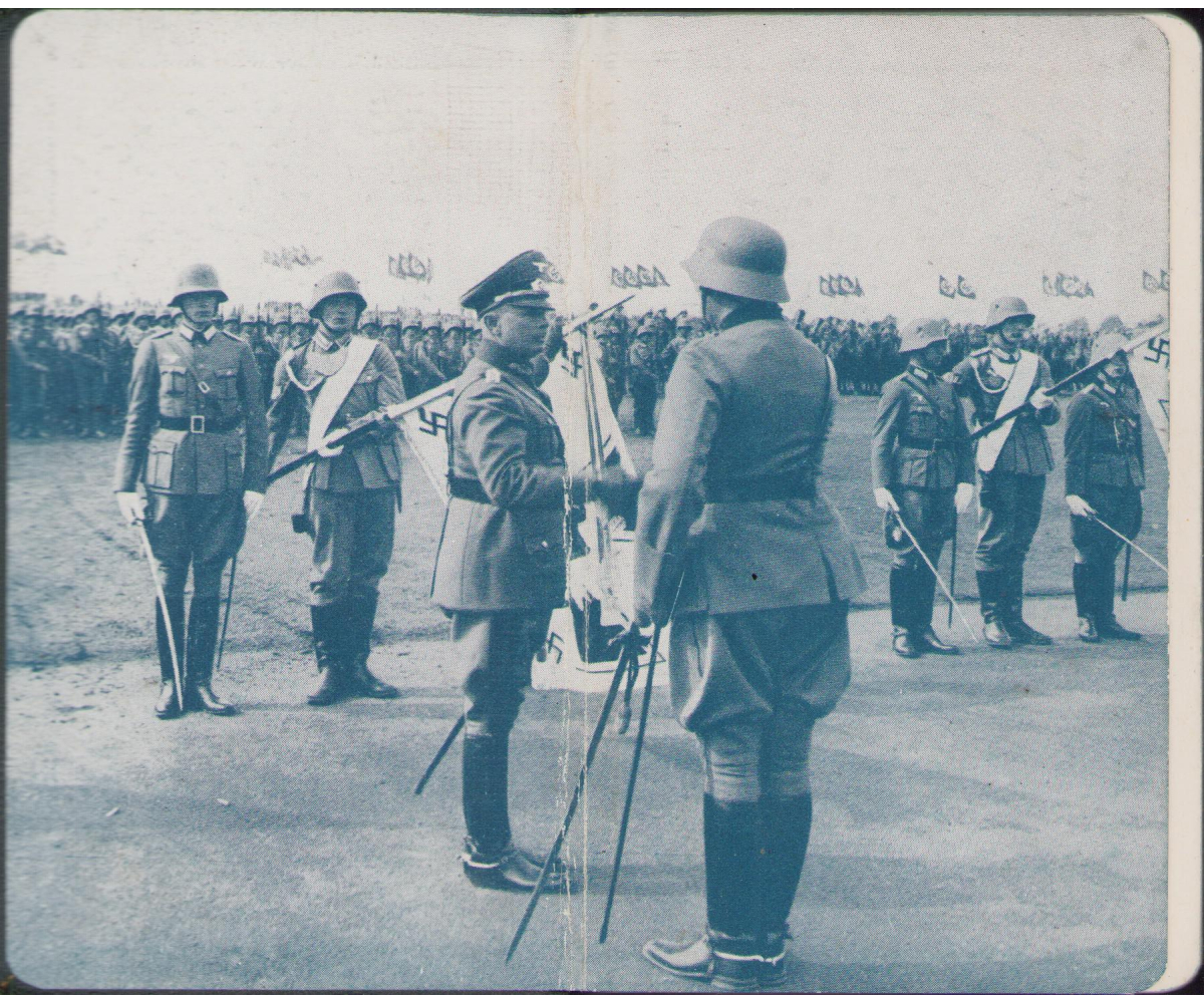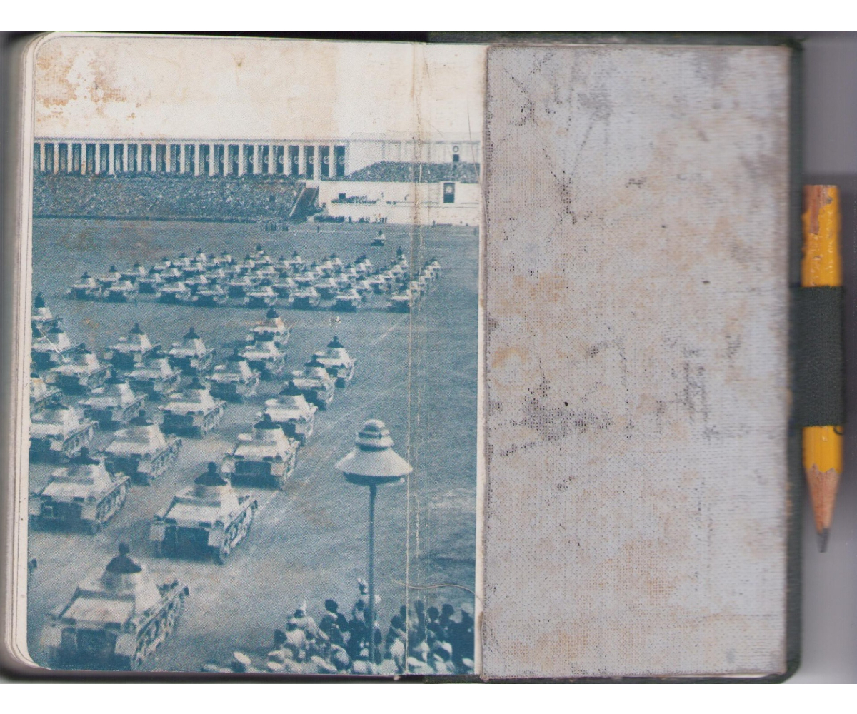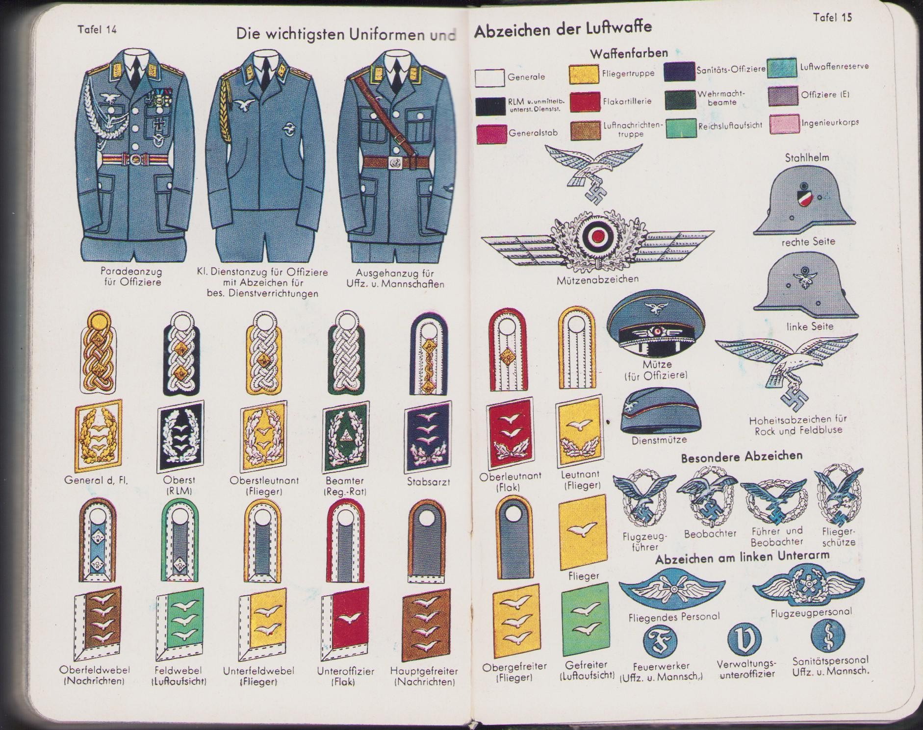 The kalender shows overall normal signs of wear. It's solid and complete with all pages. Contains in the back 30 pages, in color, about all the uniforms and insignia in the Wehrmacht.