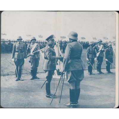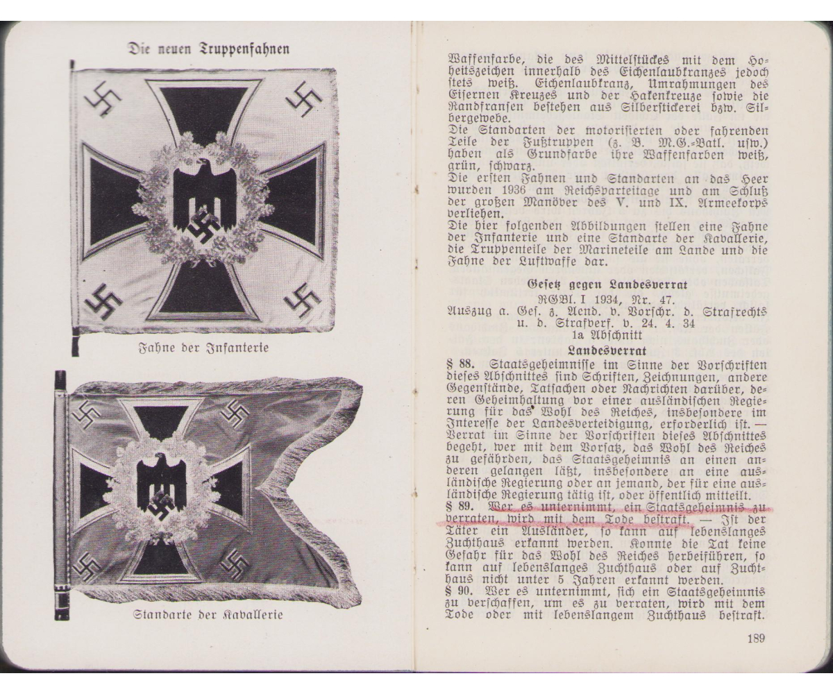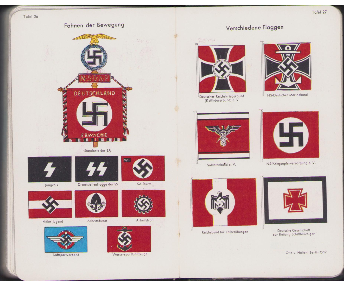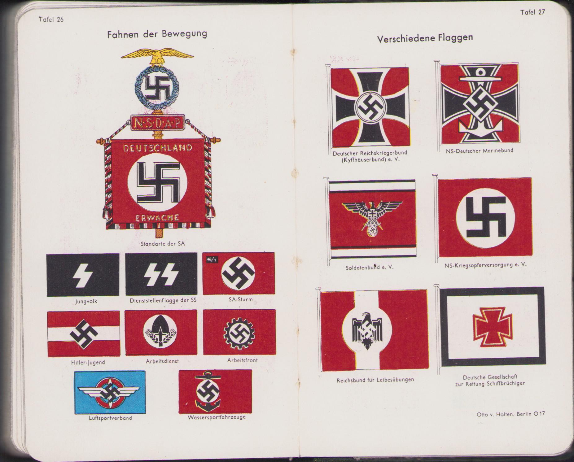 The kalender shows overall normal signs of wear. It's solid and complete with all pages. Contains in the back 30 pages, in color, about all the uniforms and insignia in the Wehrmacht.