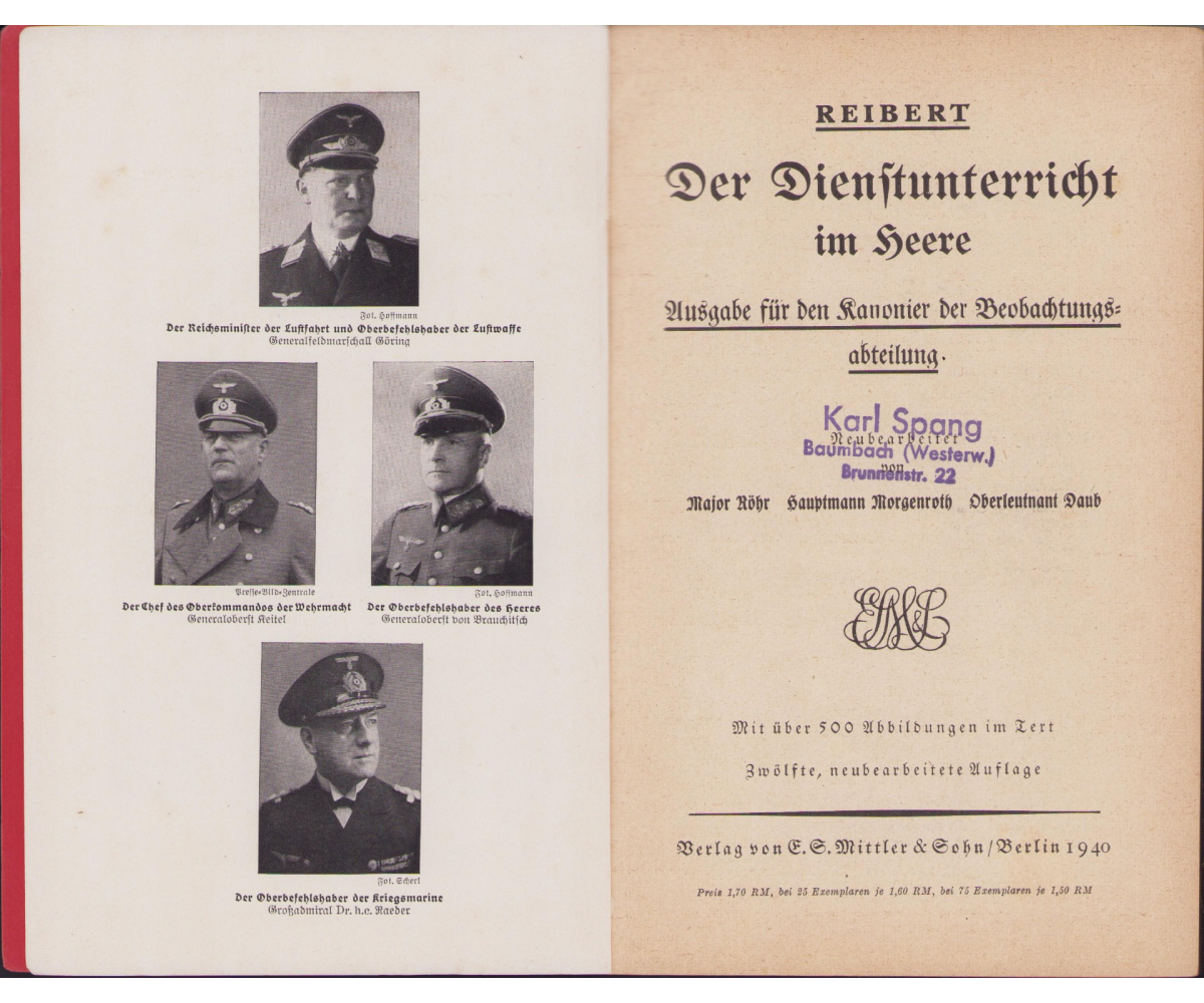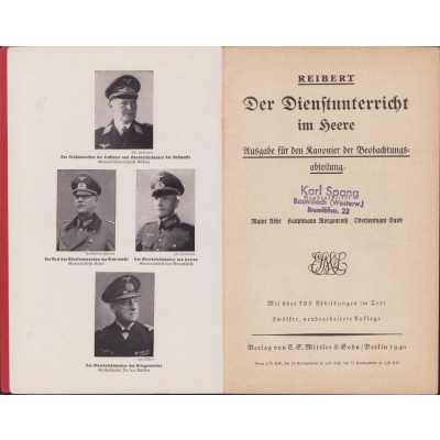 Very nice and hard to find Wehrmacht handbook called ”Der Dienstunterricht im Heere für den Kanonier der Beobachtungsabteilung” in used, but very good condition.
