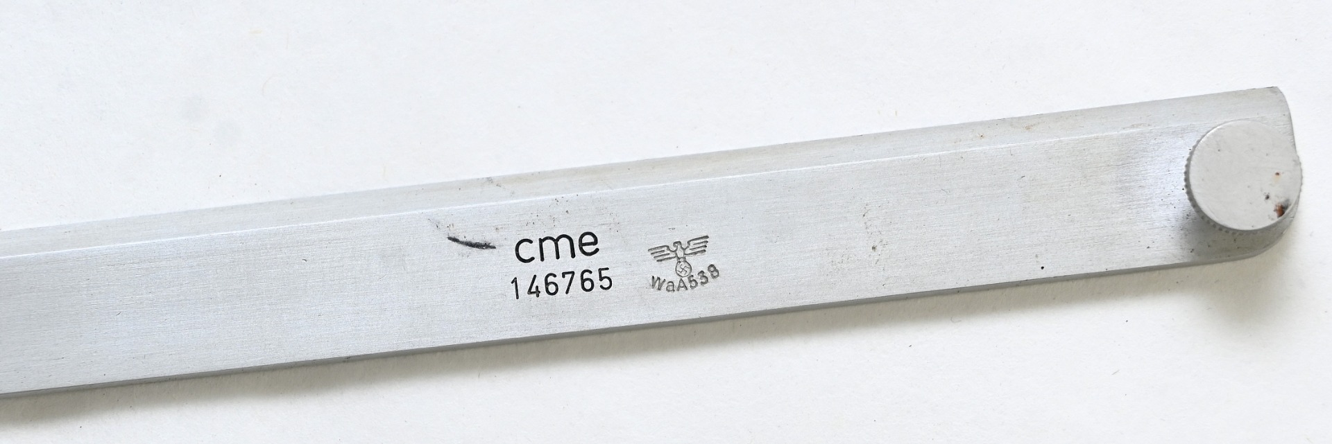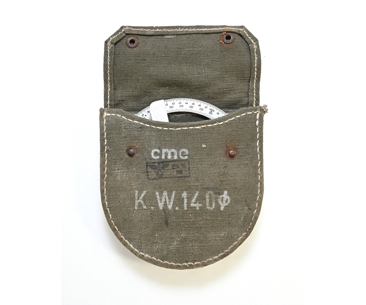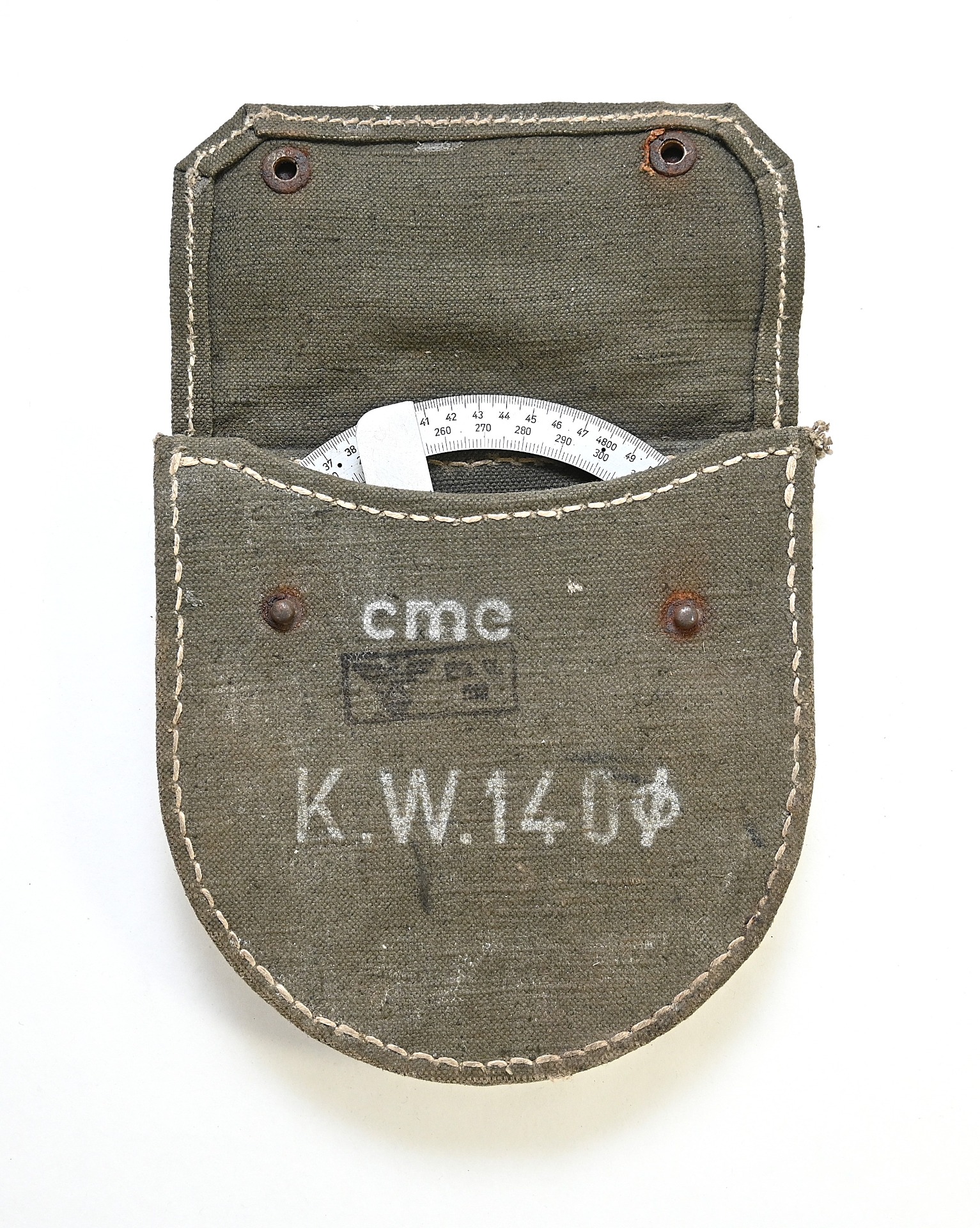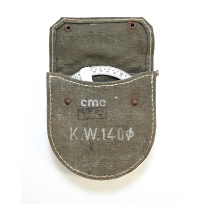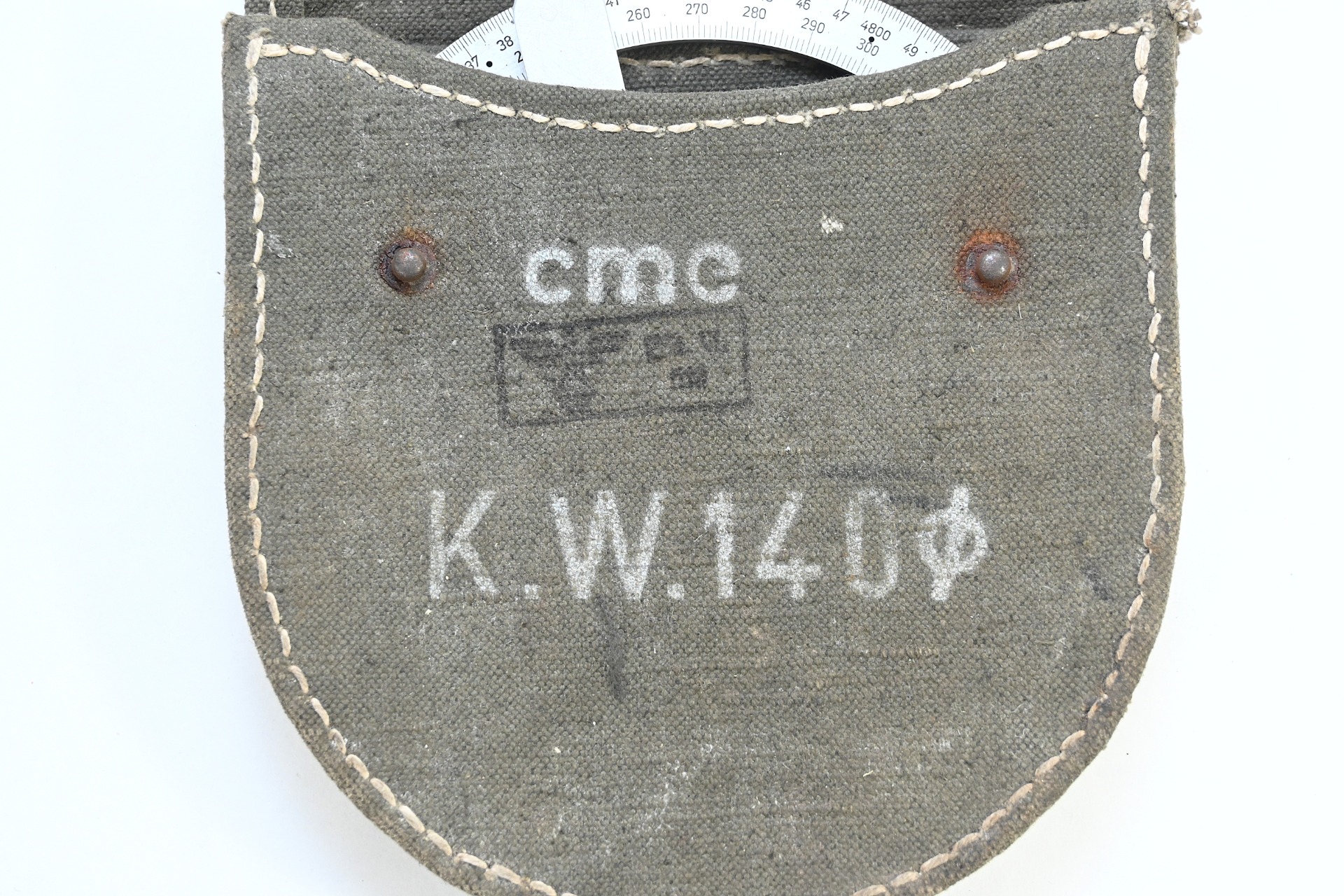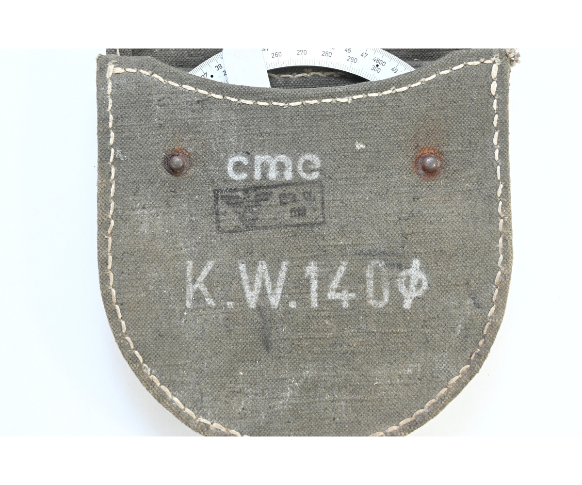Overall condition of the 'K.W.140' and it's pouch is very good. It's in working order. The pouch is marked with a 3-letter code 'cme', a WaA marking and 'K.W.140'. The measuring device is also marked with a WaA marking.
