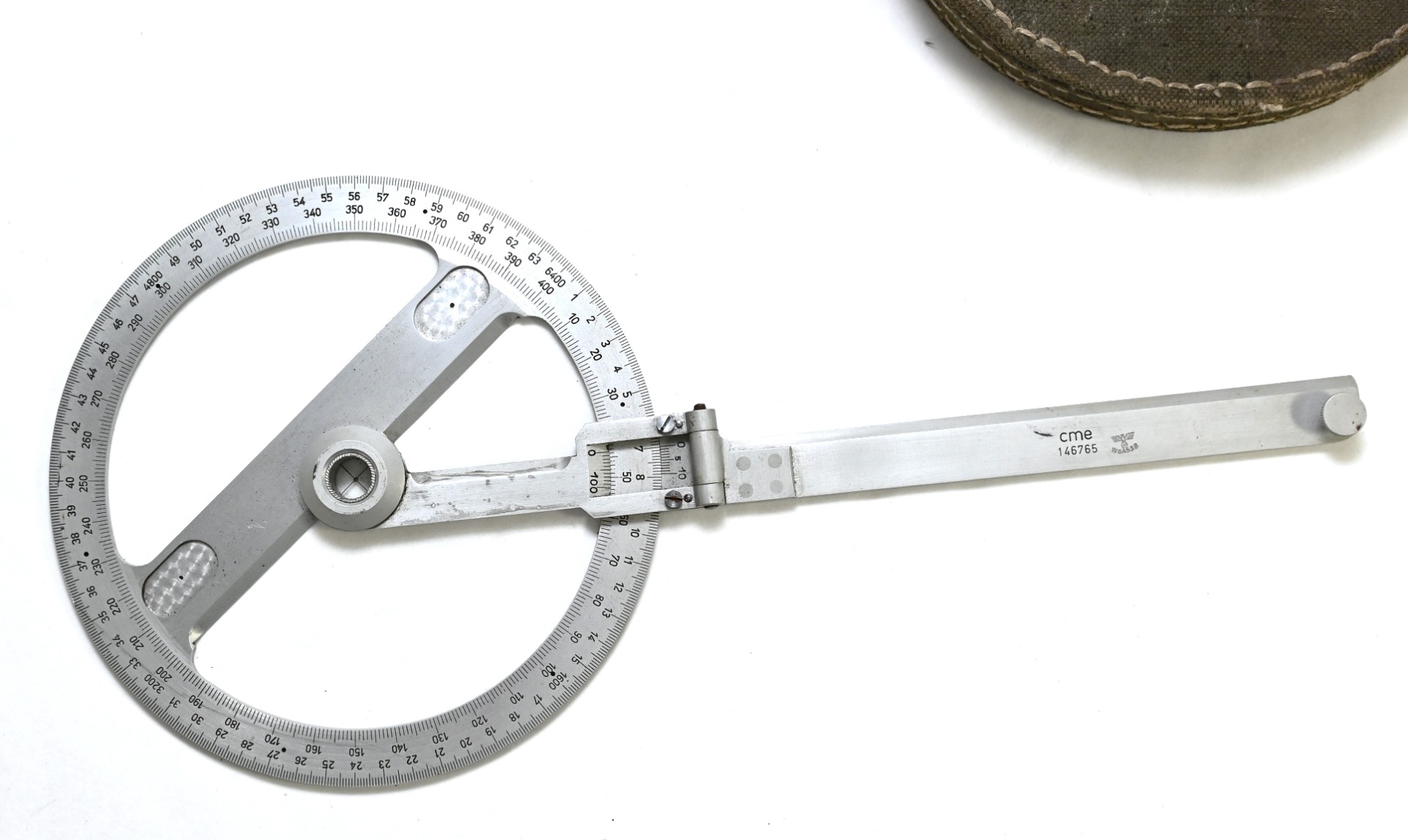 A very nice and hard to find matching pre war, so-called 'Kartenwinkelmesser 140' or 'map distance measuring instrument' in excellent condition.
