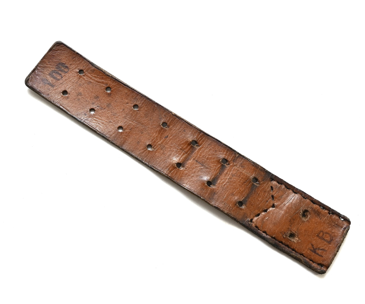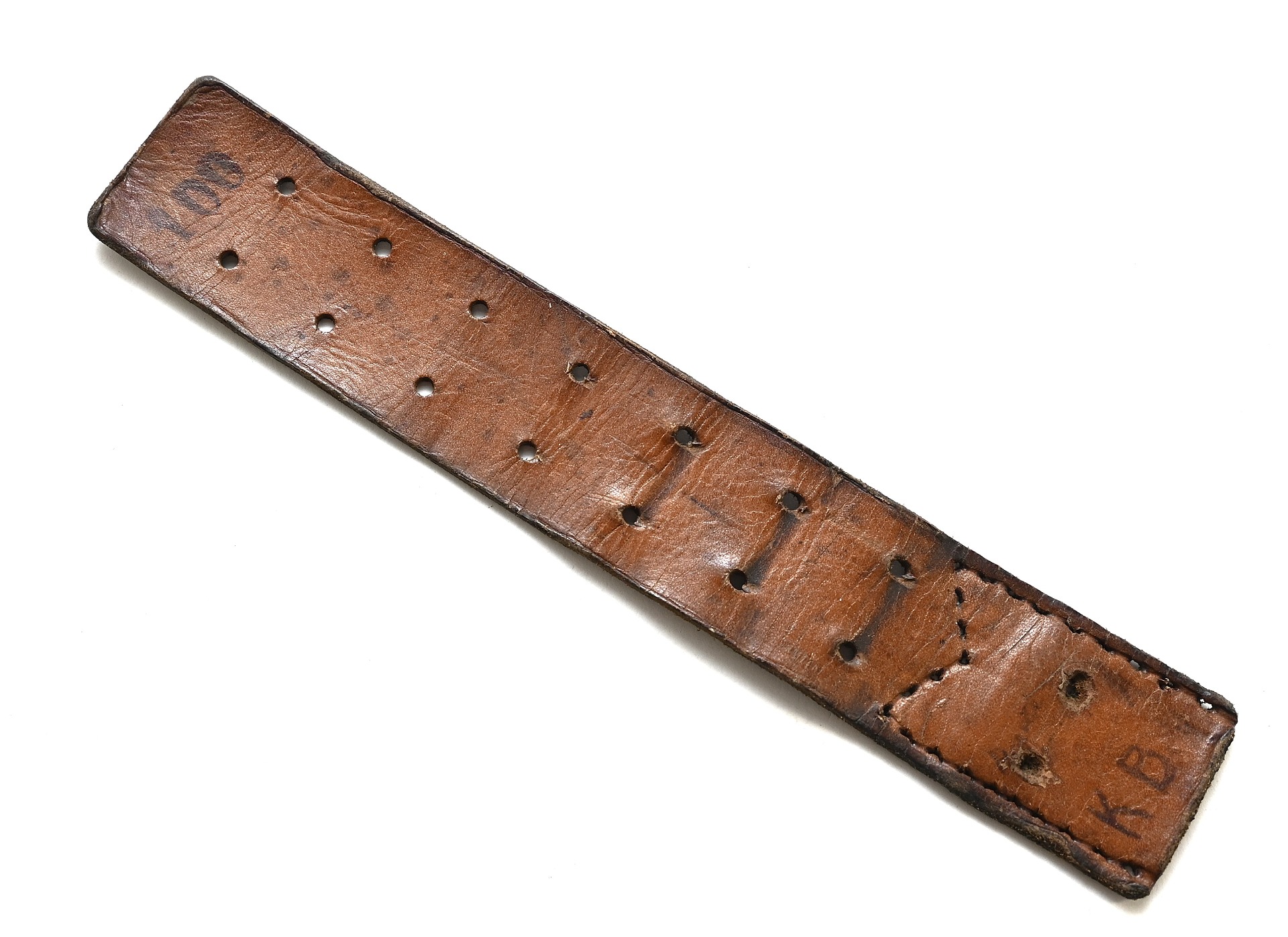 The piece shows overall normal signs of wear. The leather is supple and solid. Ideal piece to restore an early equipment belt.