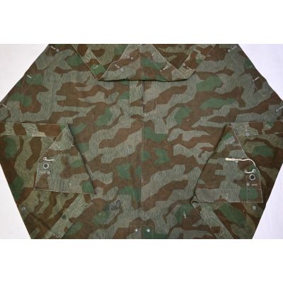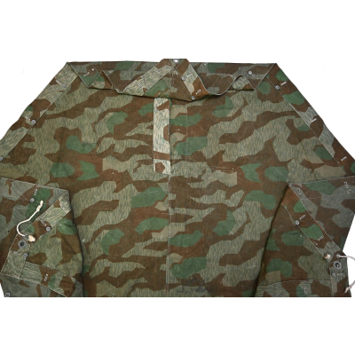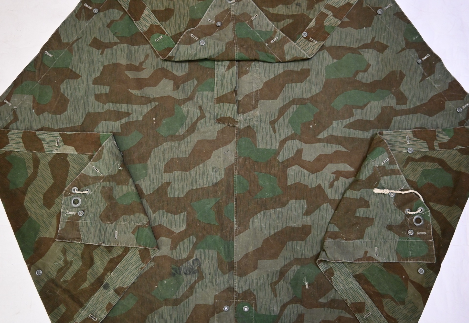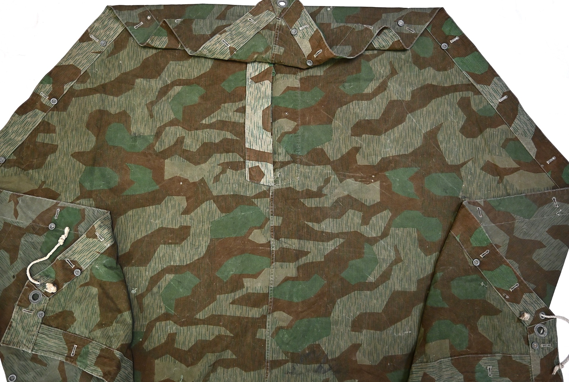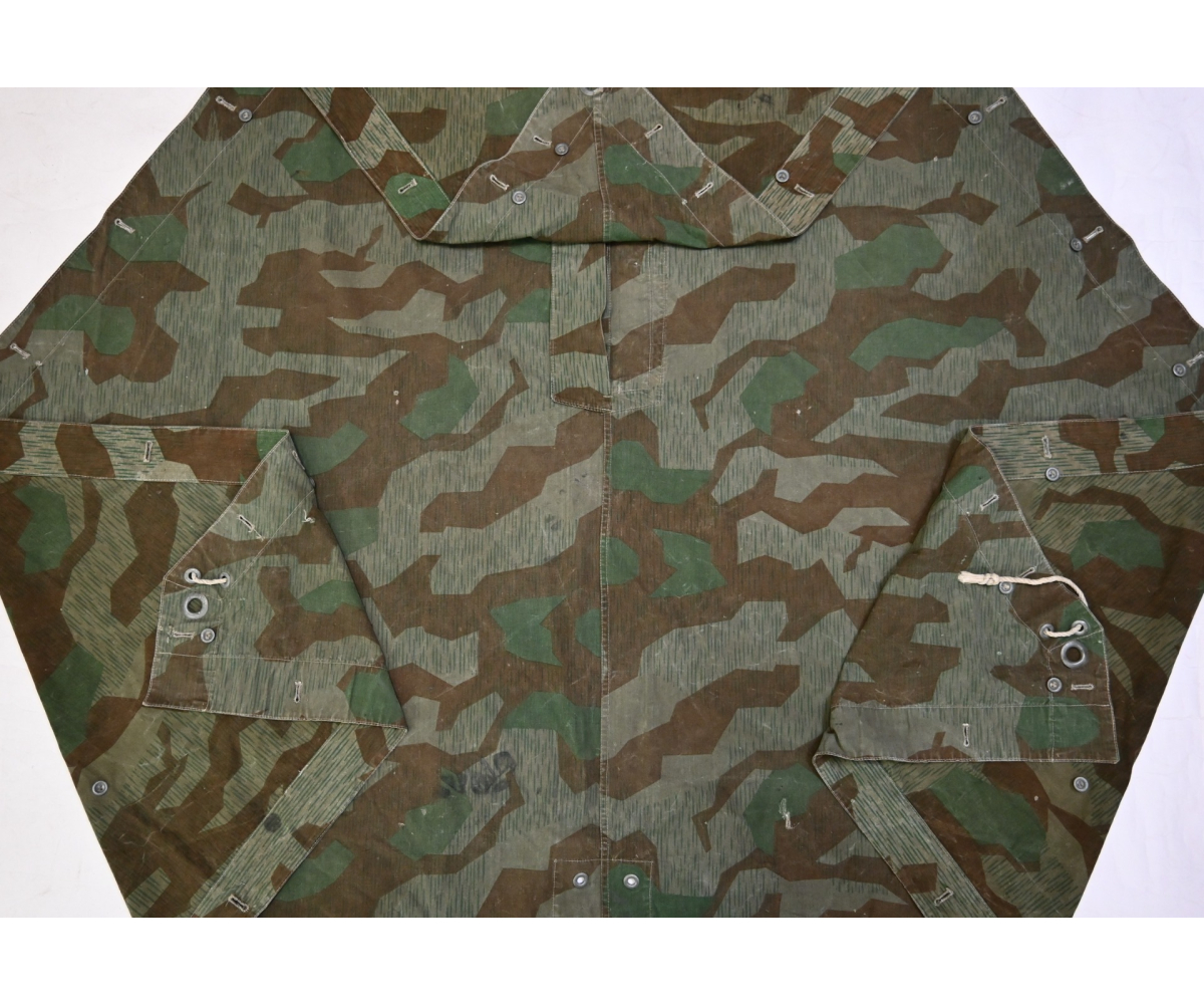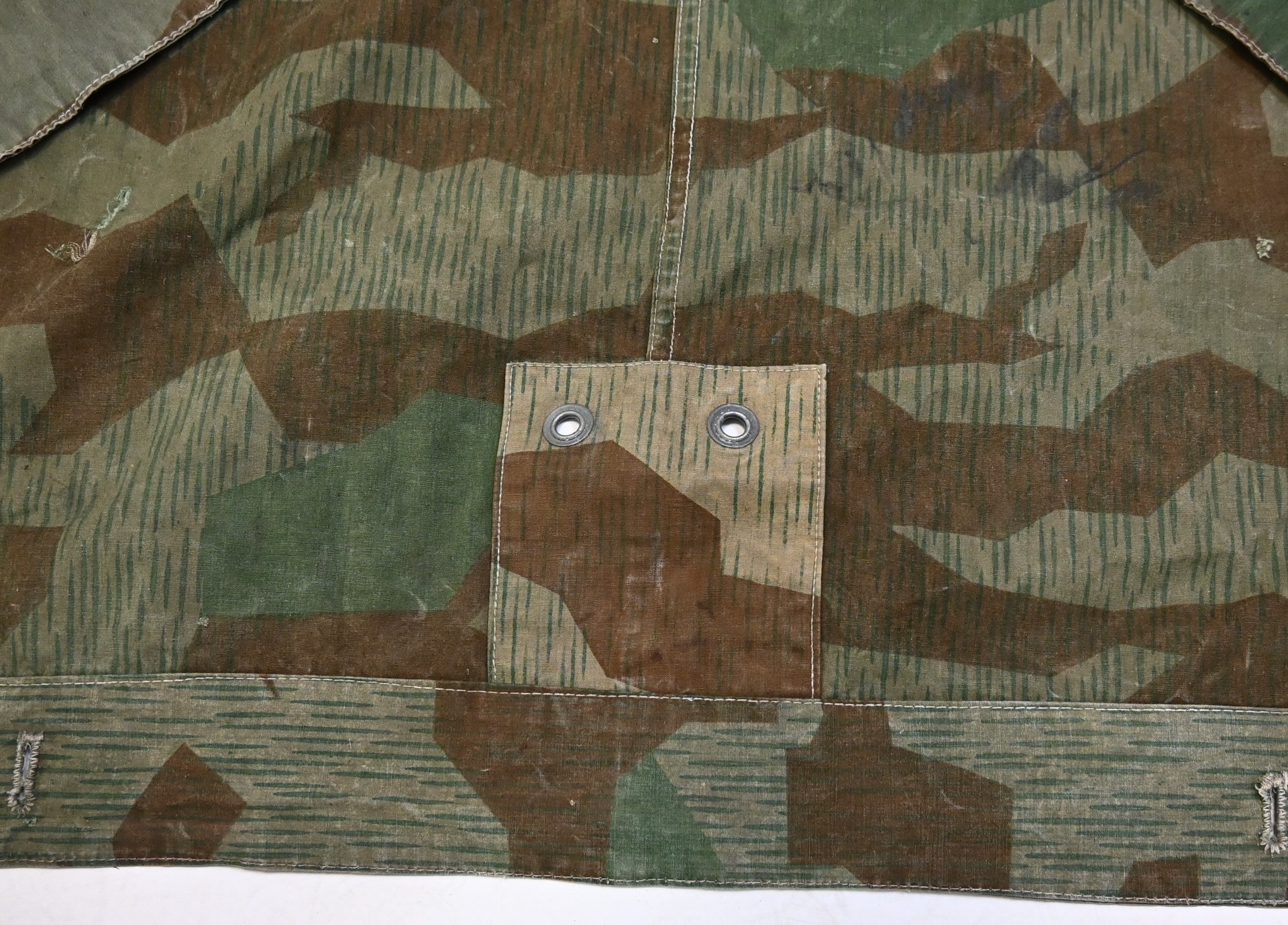The zeltbahn shows overall normal signs of wear. Some buttons are missing, but most are present. Not visible maker marked.