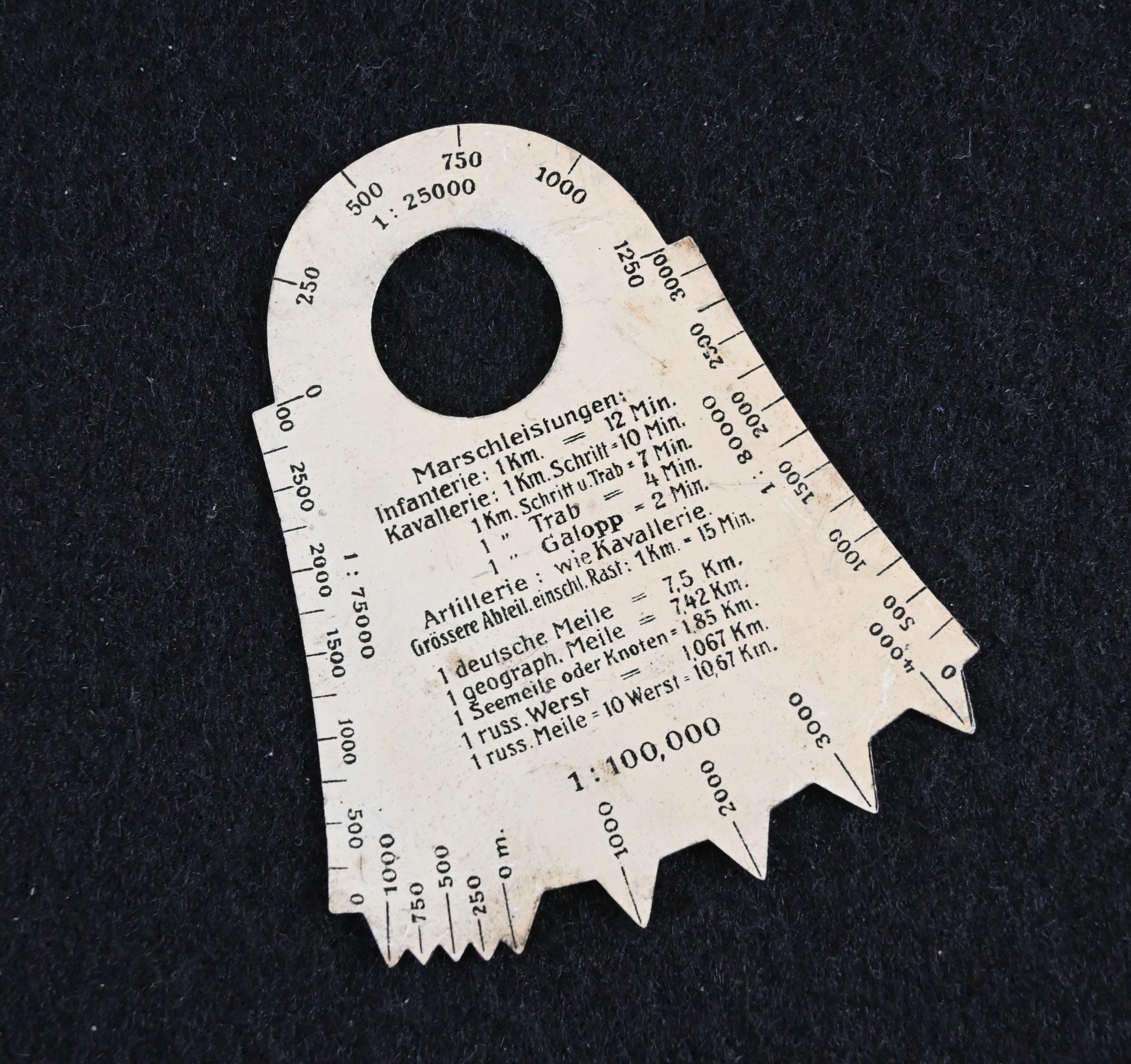The ruler shows overall normal signs of use. The size is approx. 5,4cm * 6,5cm. Often missing in a map case.