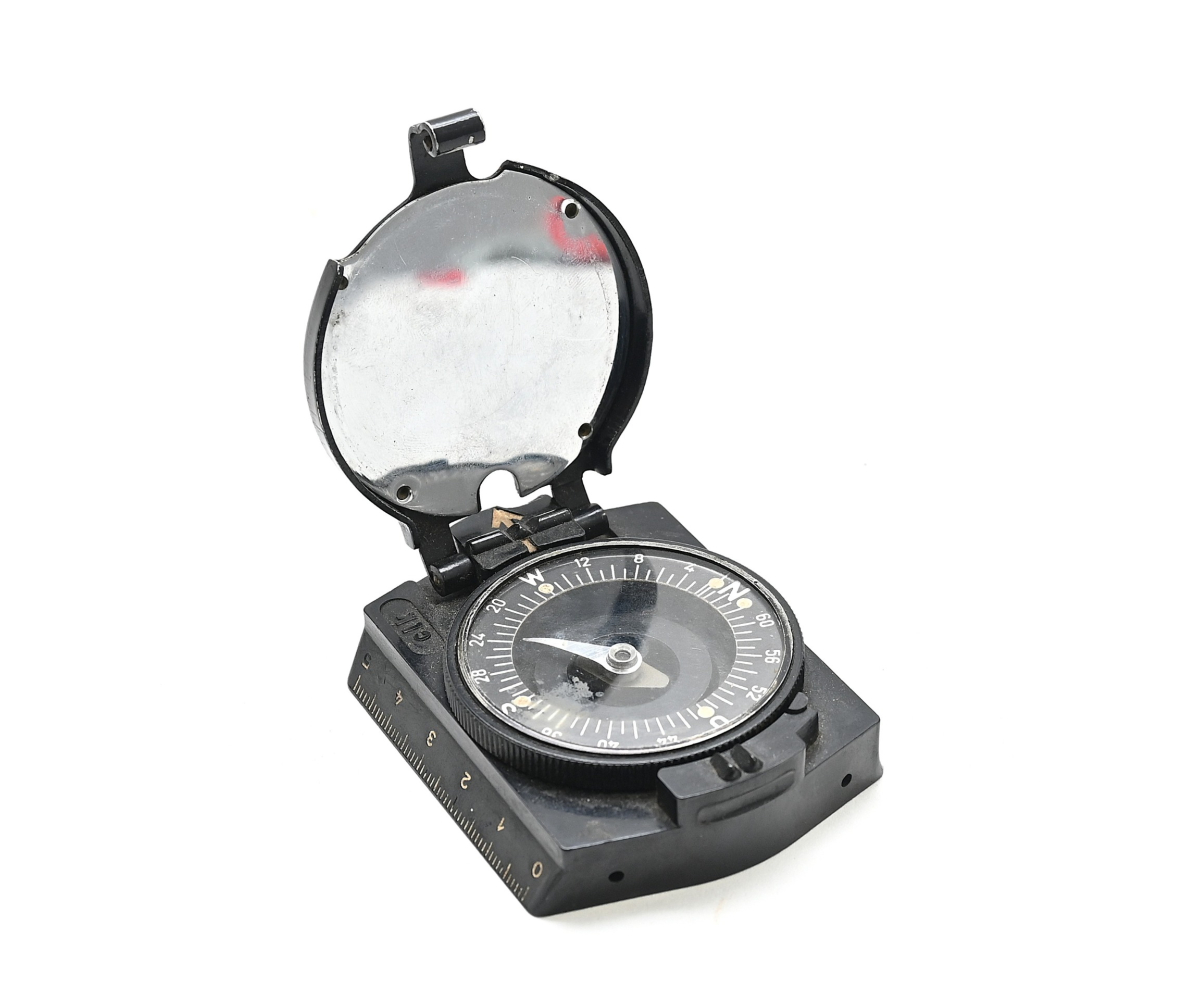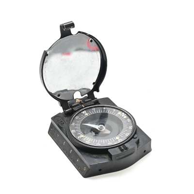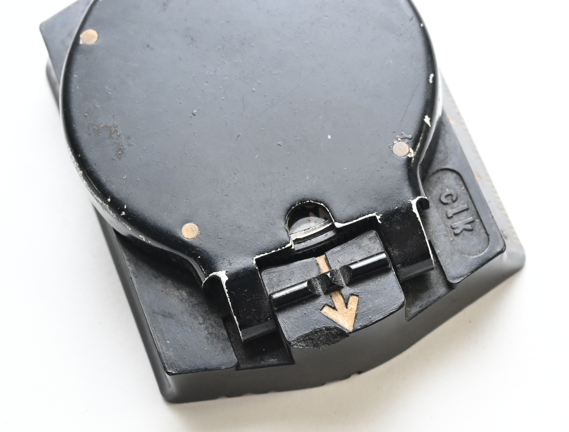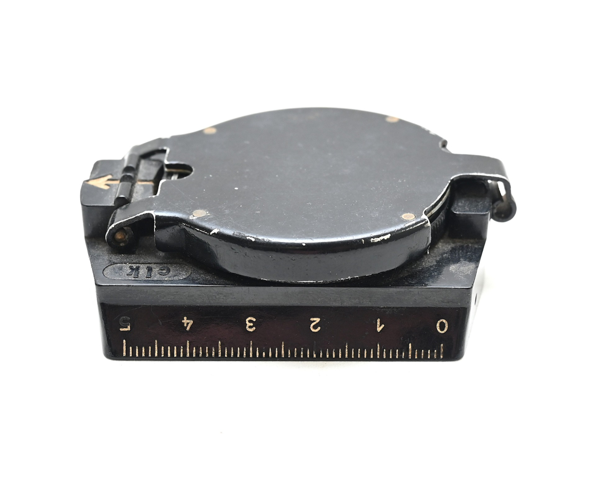 The compass shows overall normal signs of use and is in working order. Marker marked 'clk' which means the maker is F.W. Breithaupt & Sohn from Kassel.