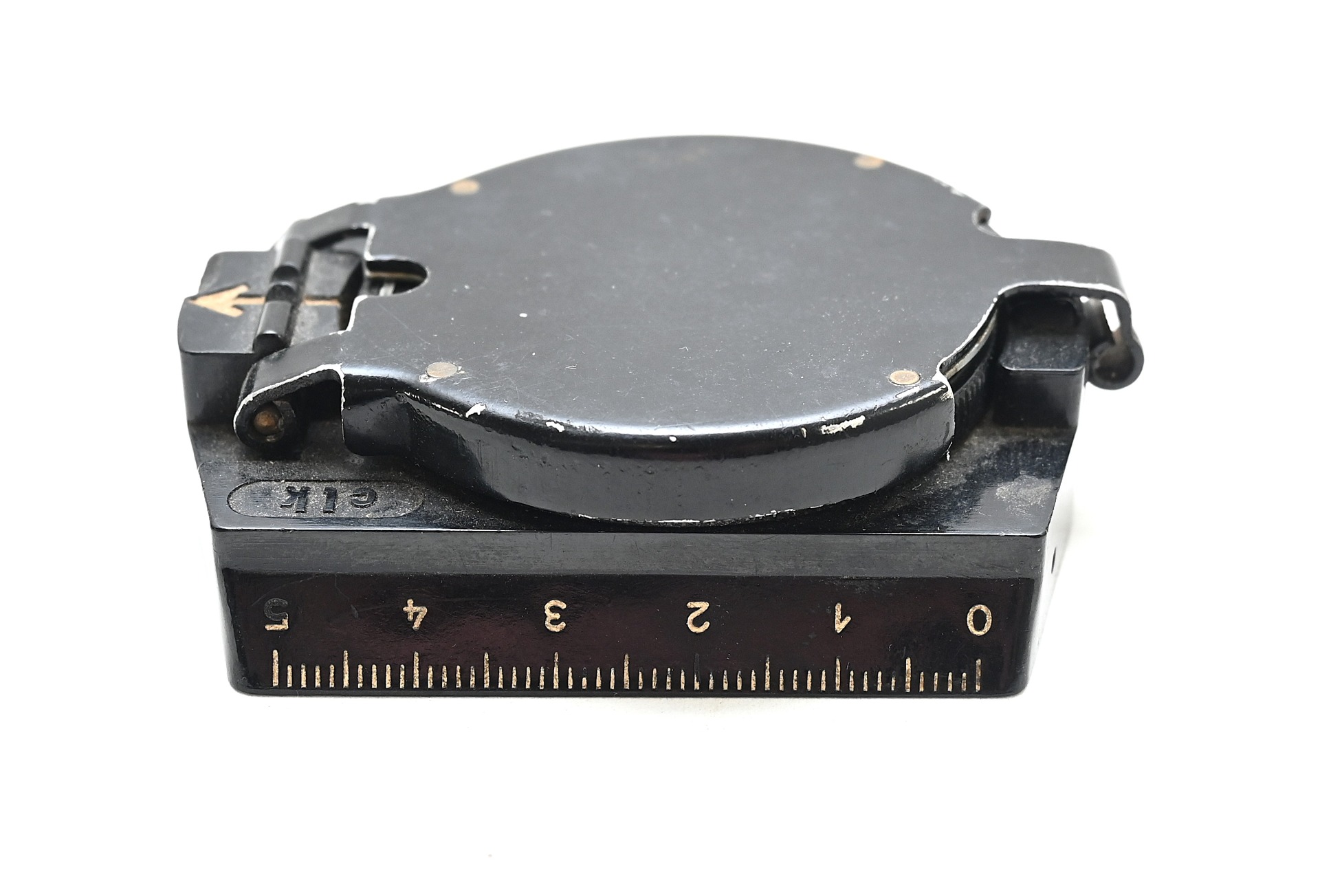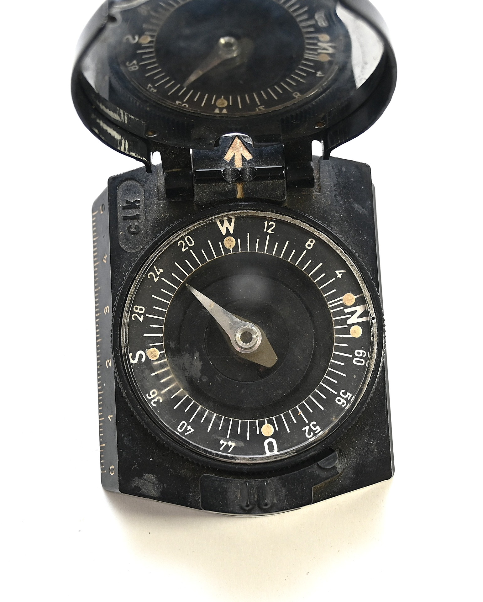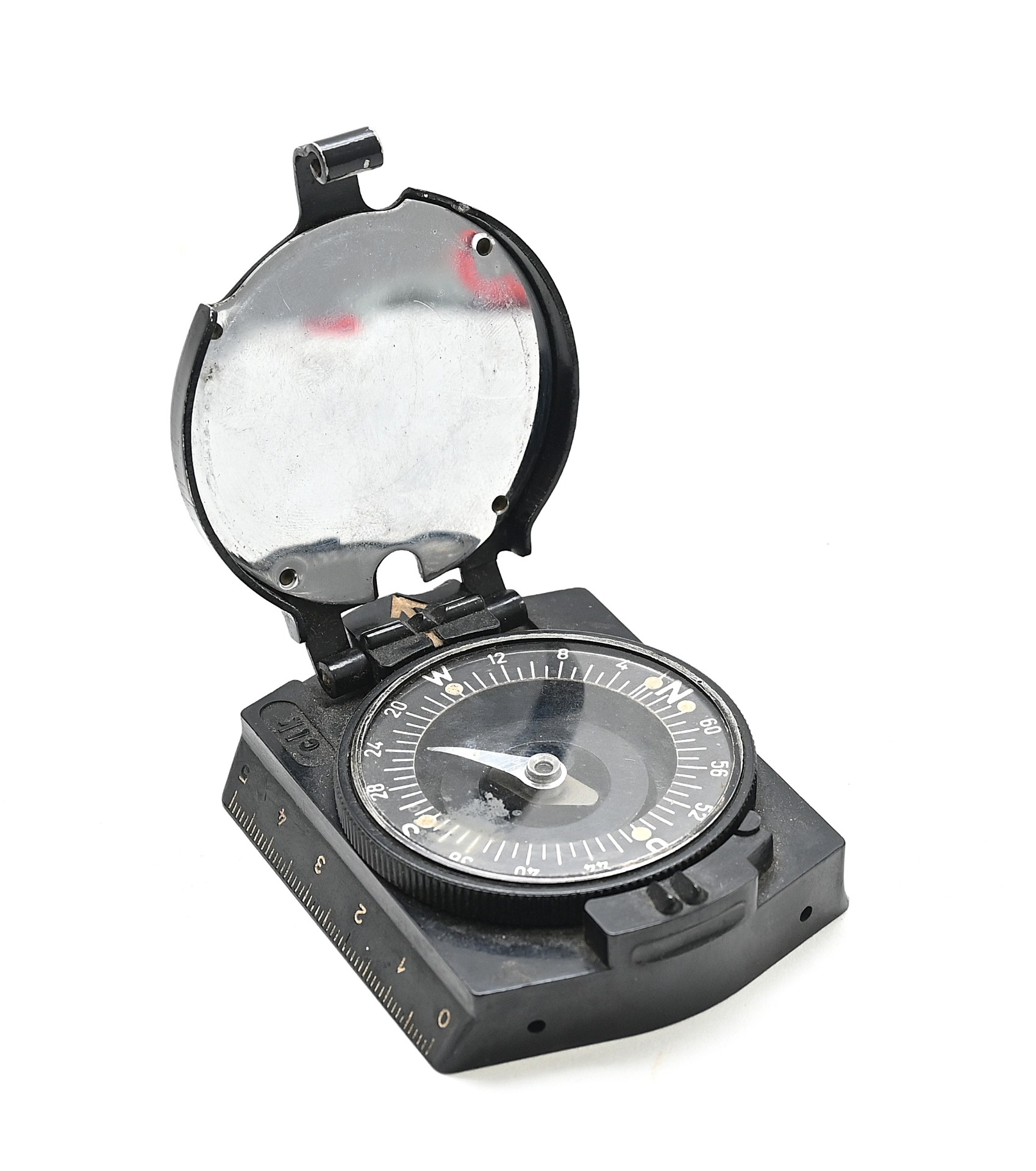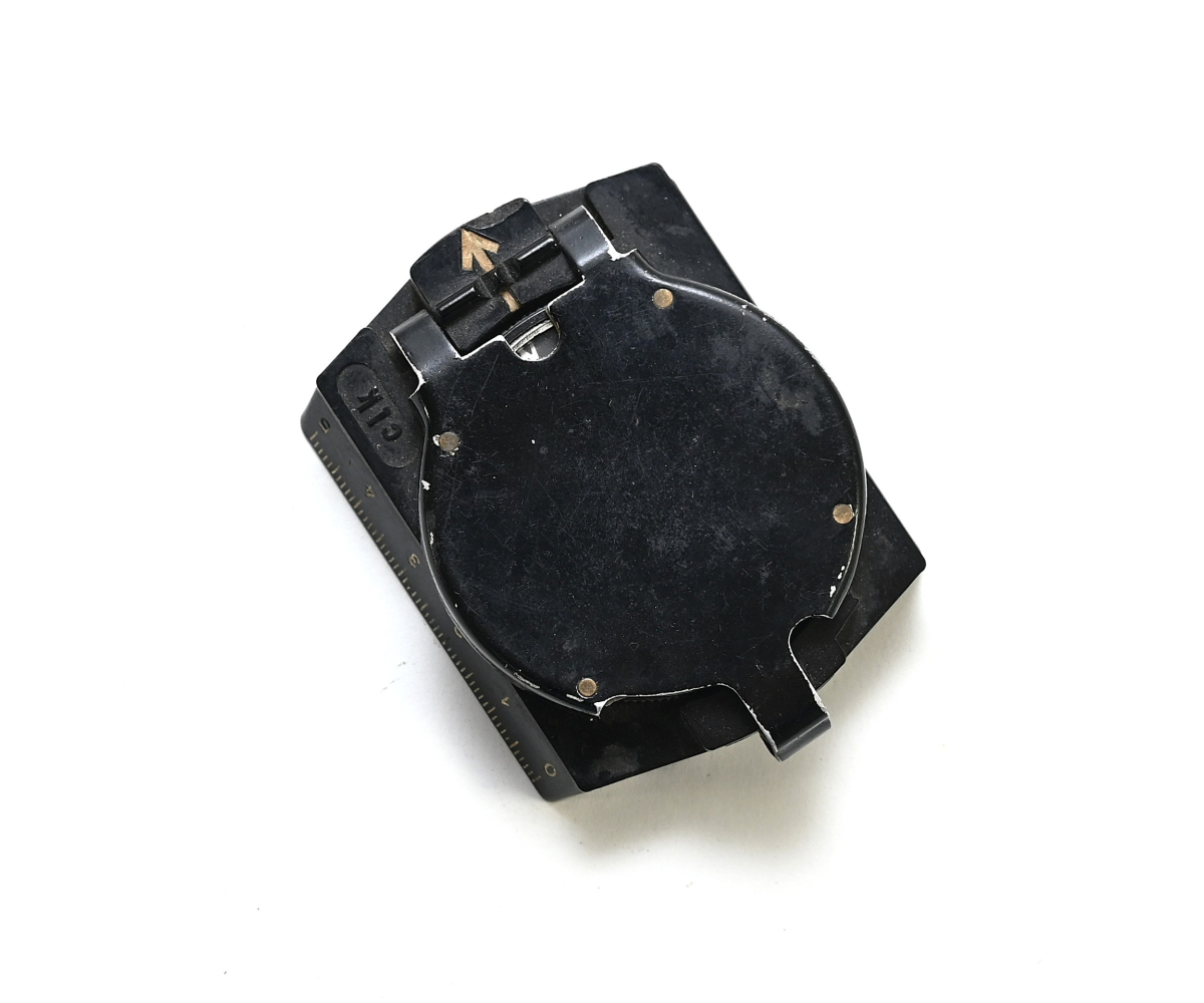 The compass shows overall normal signs of use and is in working order. Marker marked 'clk' which means the maker is F.W. Breithaupt & Sohn from Kassel.