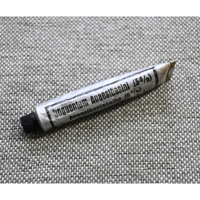 Nice medical tube of ”Anaesthesinsalbe' in used, but very good condition.