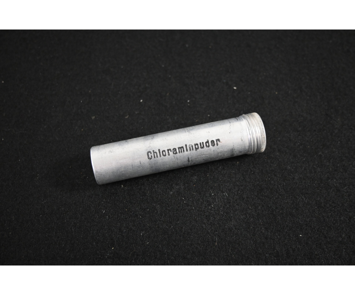 The container shows overall normal signs of storage wear. It's complete with content inside. Perfect to complete a Verbandkasten, medical pouch or for a medical display. The length of the cilinder is 10cms.
