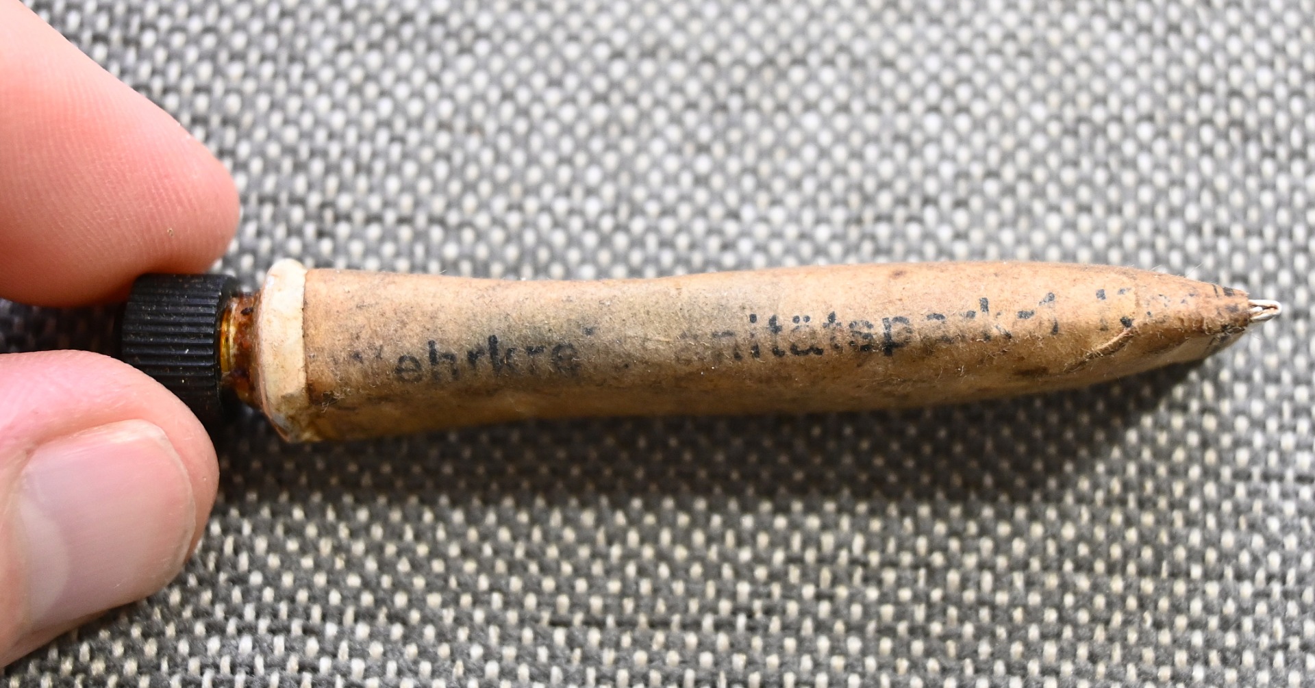 The tube shows overall normal signs of wear. Good item to complete your sanitäter kit. Or for a medical display.