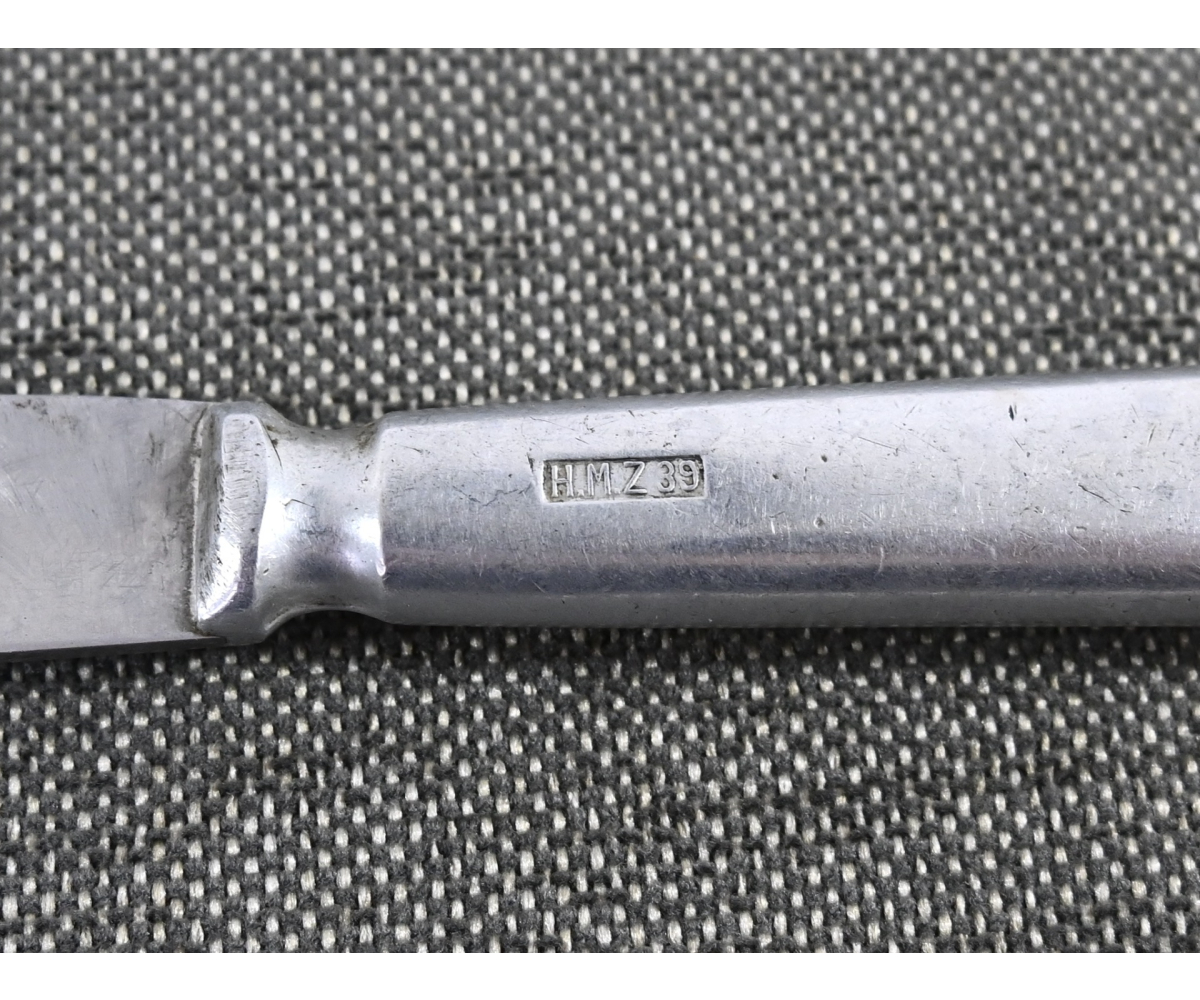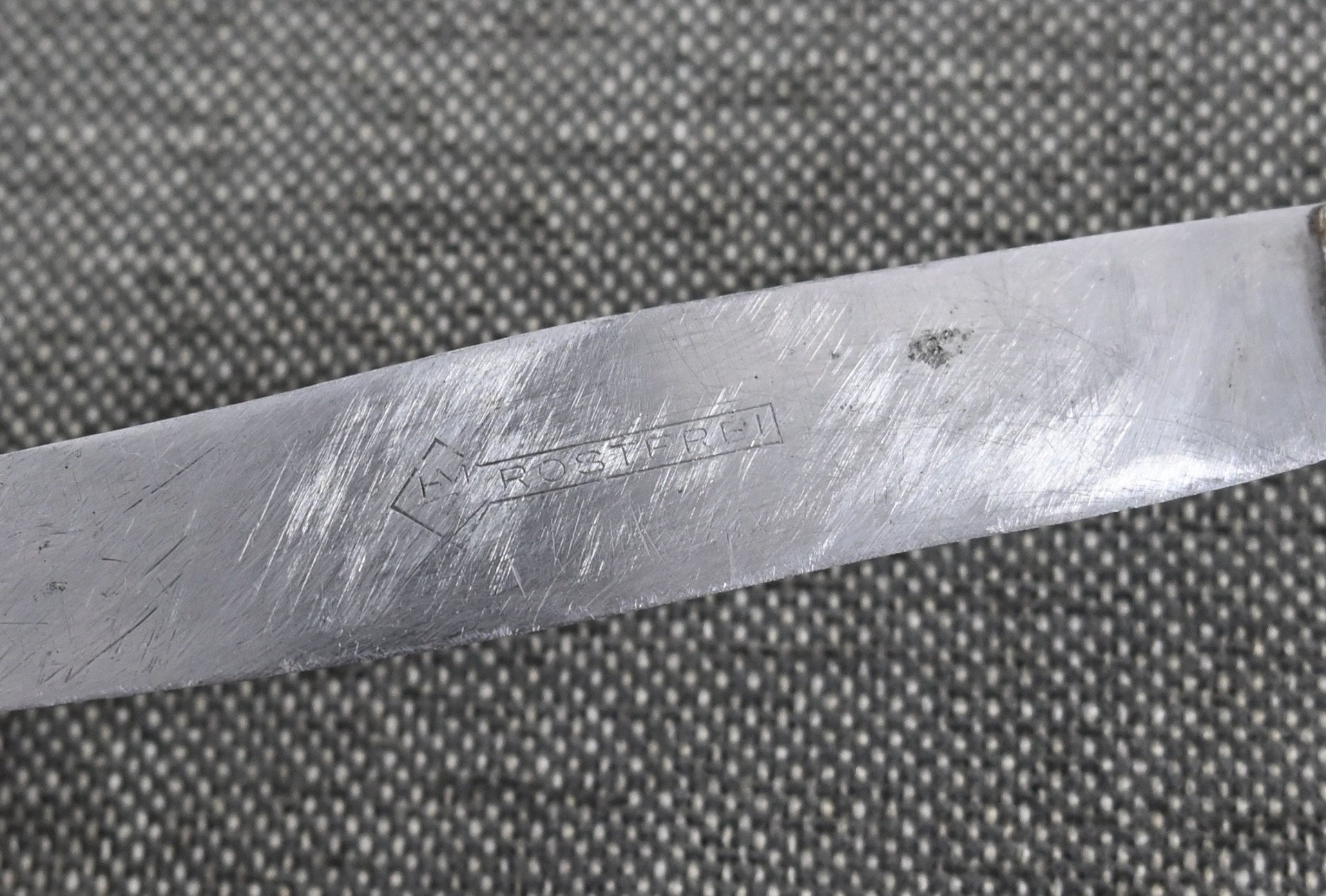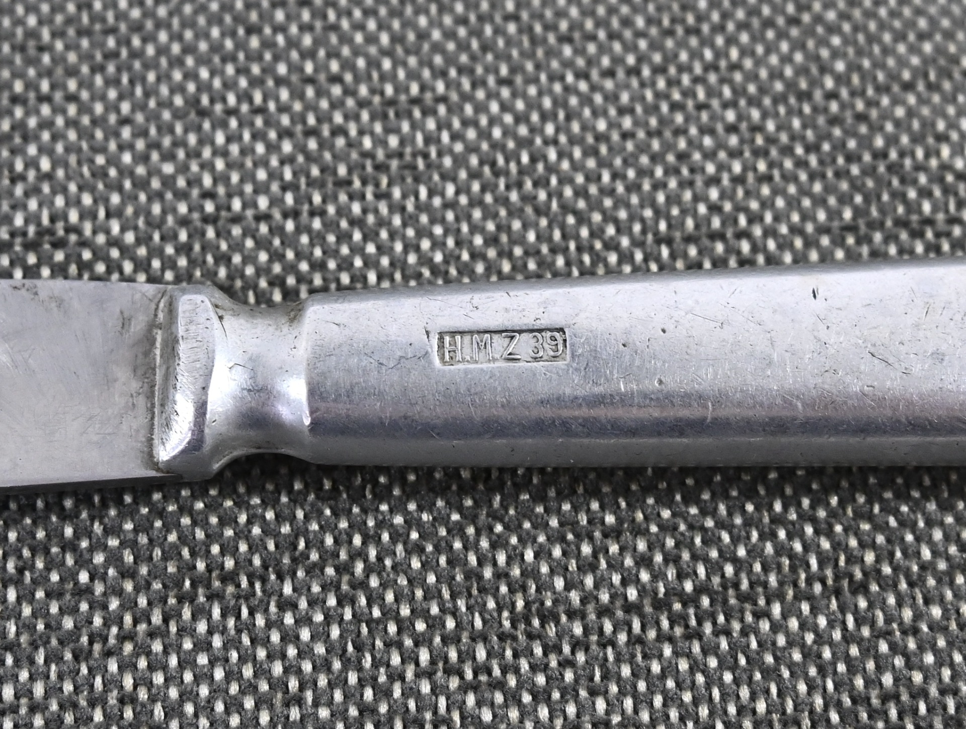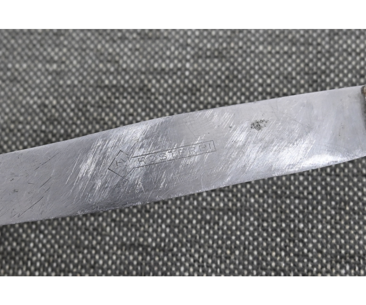 The knife shows overall normal signs of use. Marked with the National eagle and makers mark 'H.M.Z.39.' on the front. The blade is also maker marked 'H.M.Z.' and 'Rostfrei', meaning it is made of stainless steel.