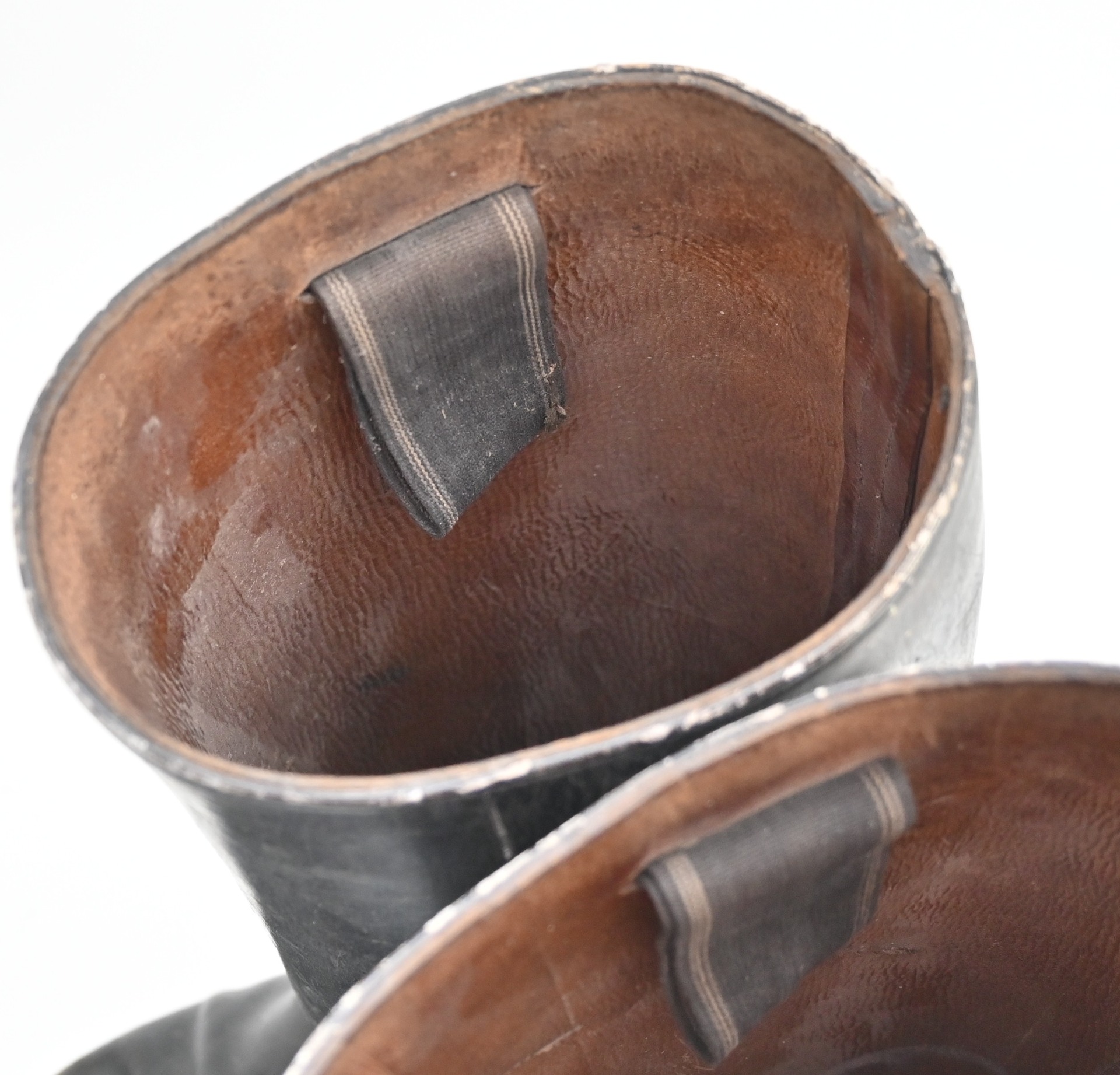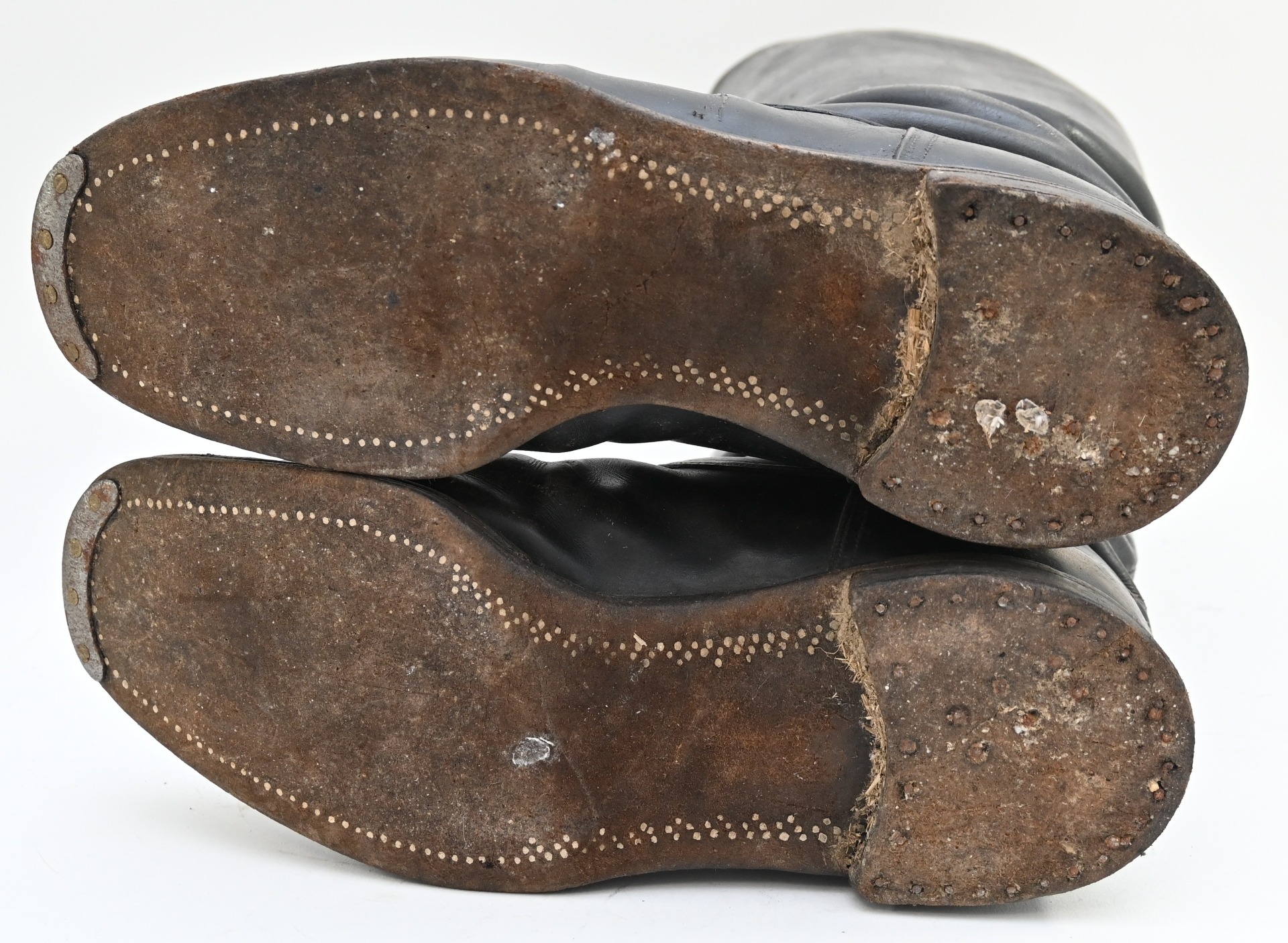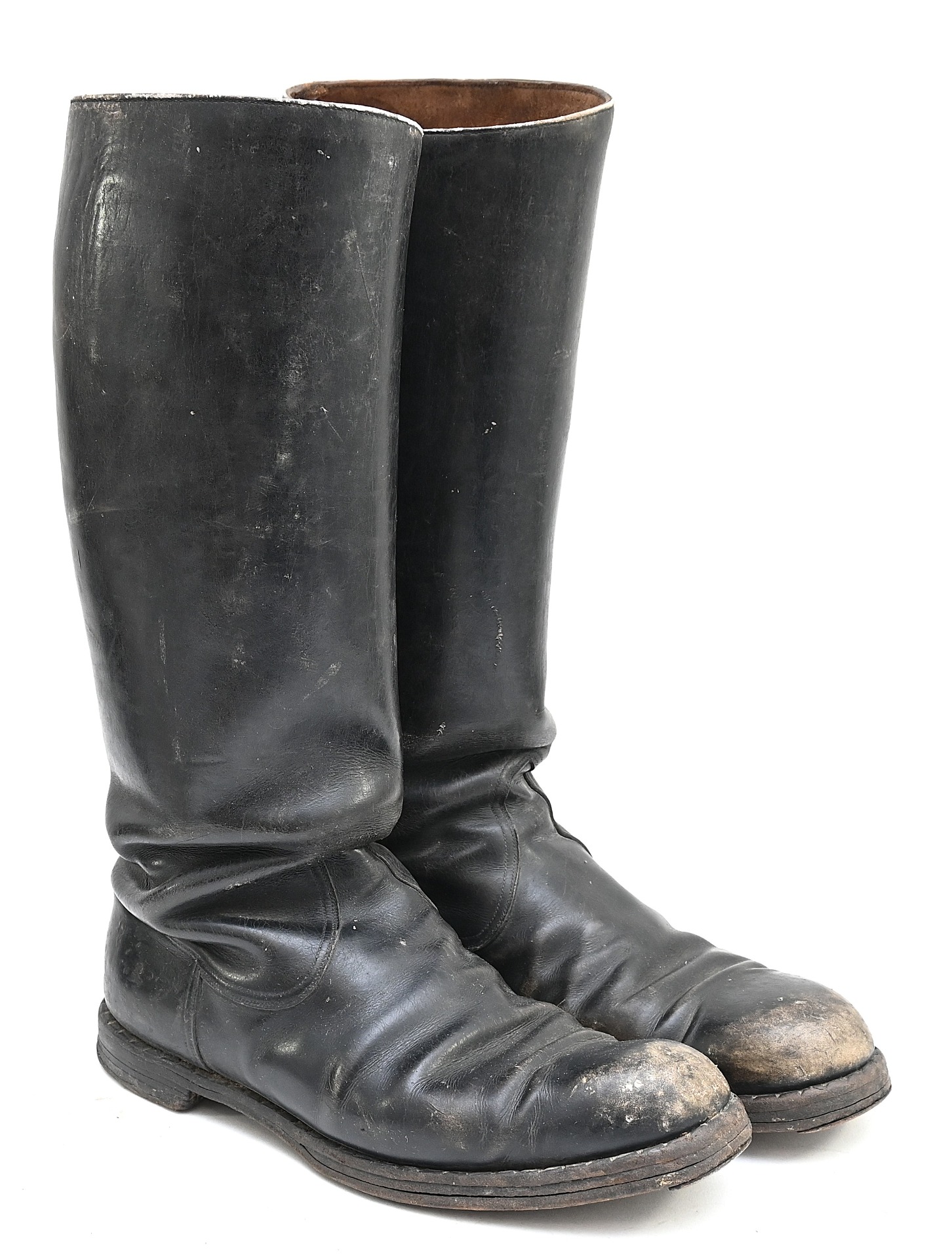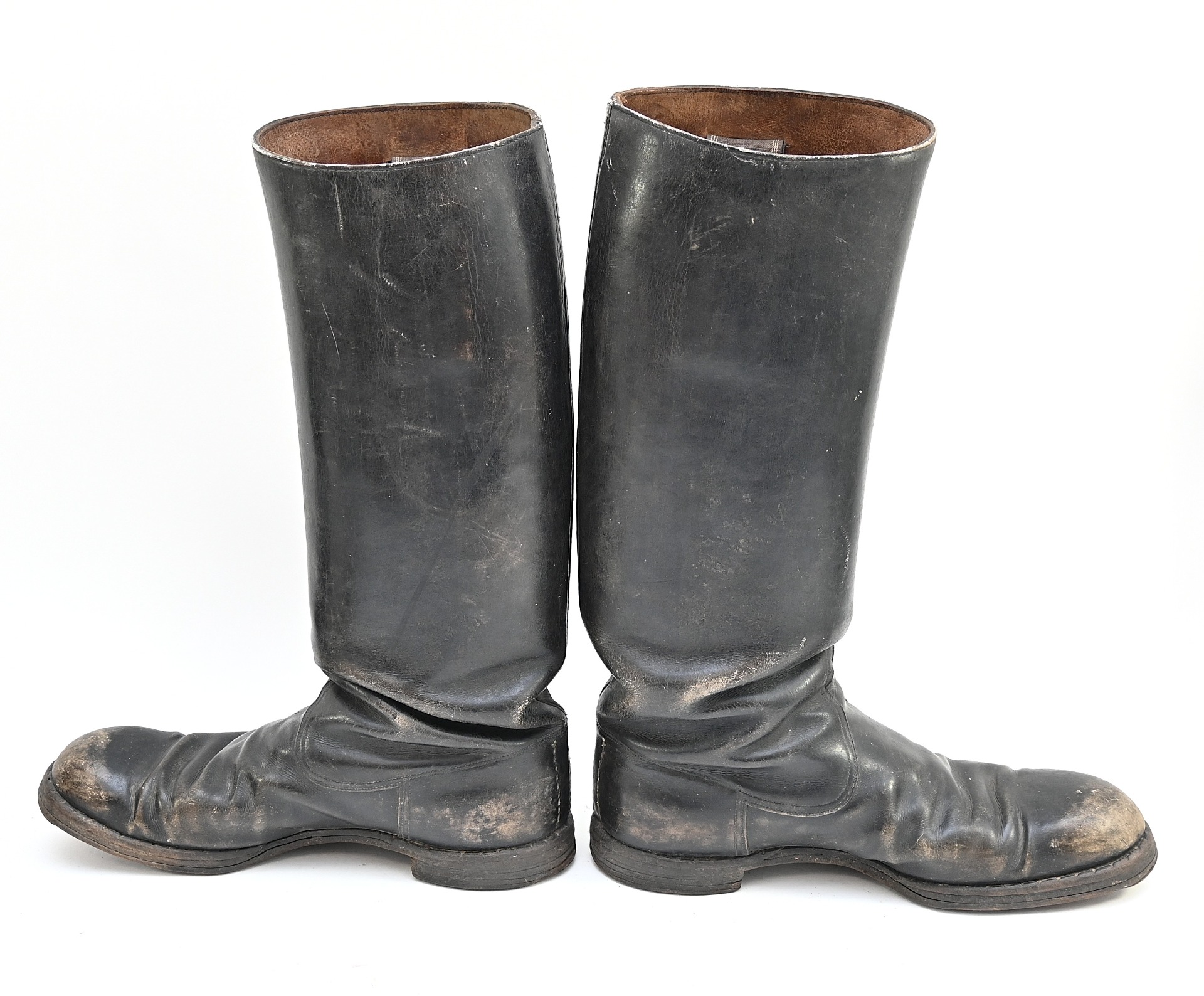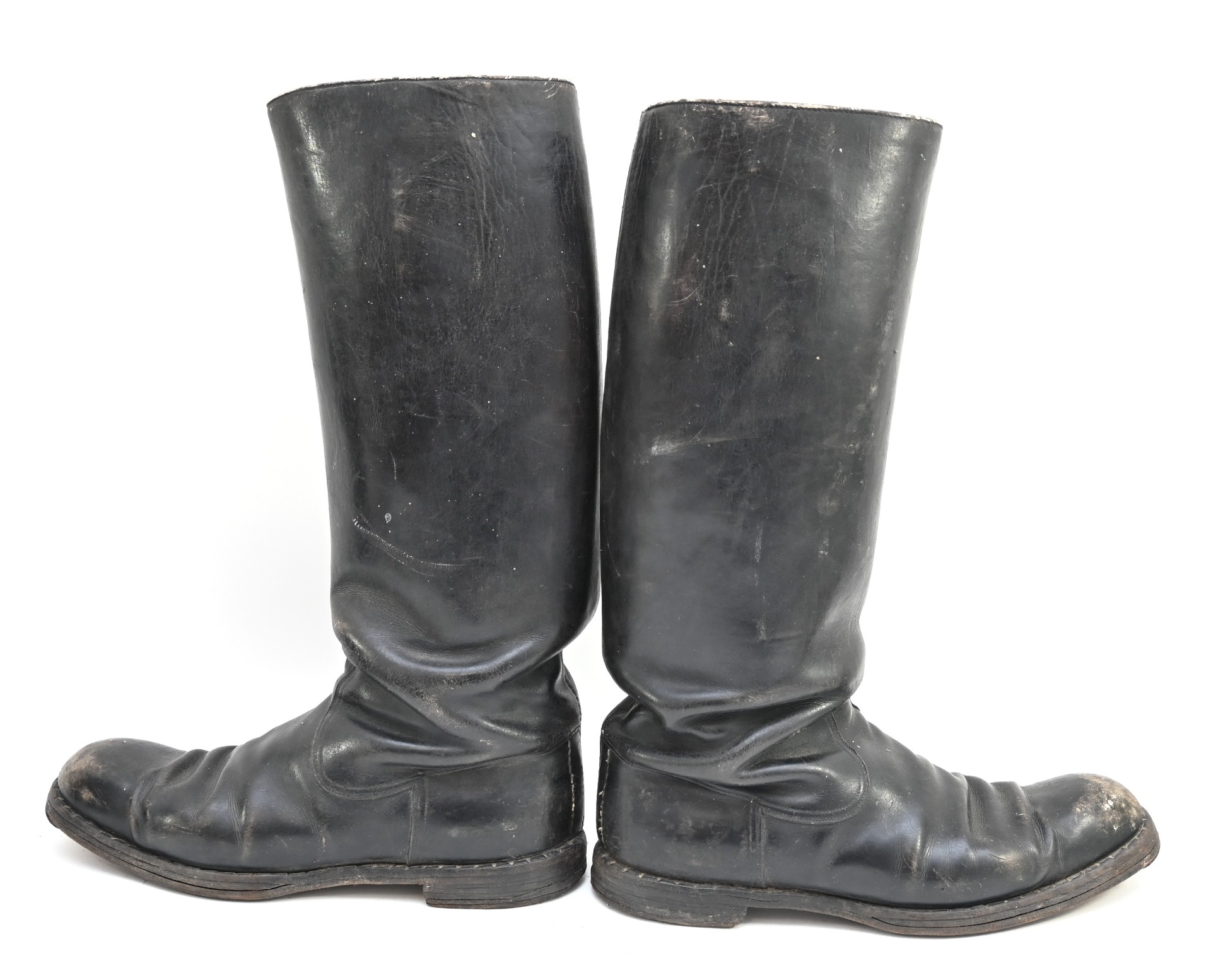 The boots show overall minor signs of wear. The leather is supple and solid. No damages. The length of the soles is approx 30cms and the height approx. 43cms.