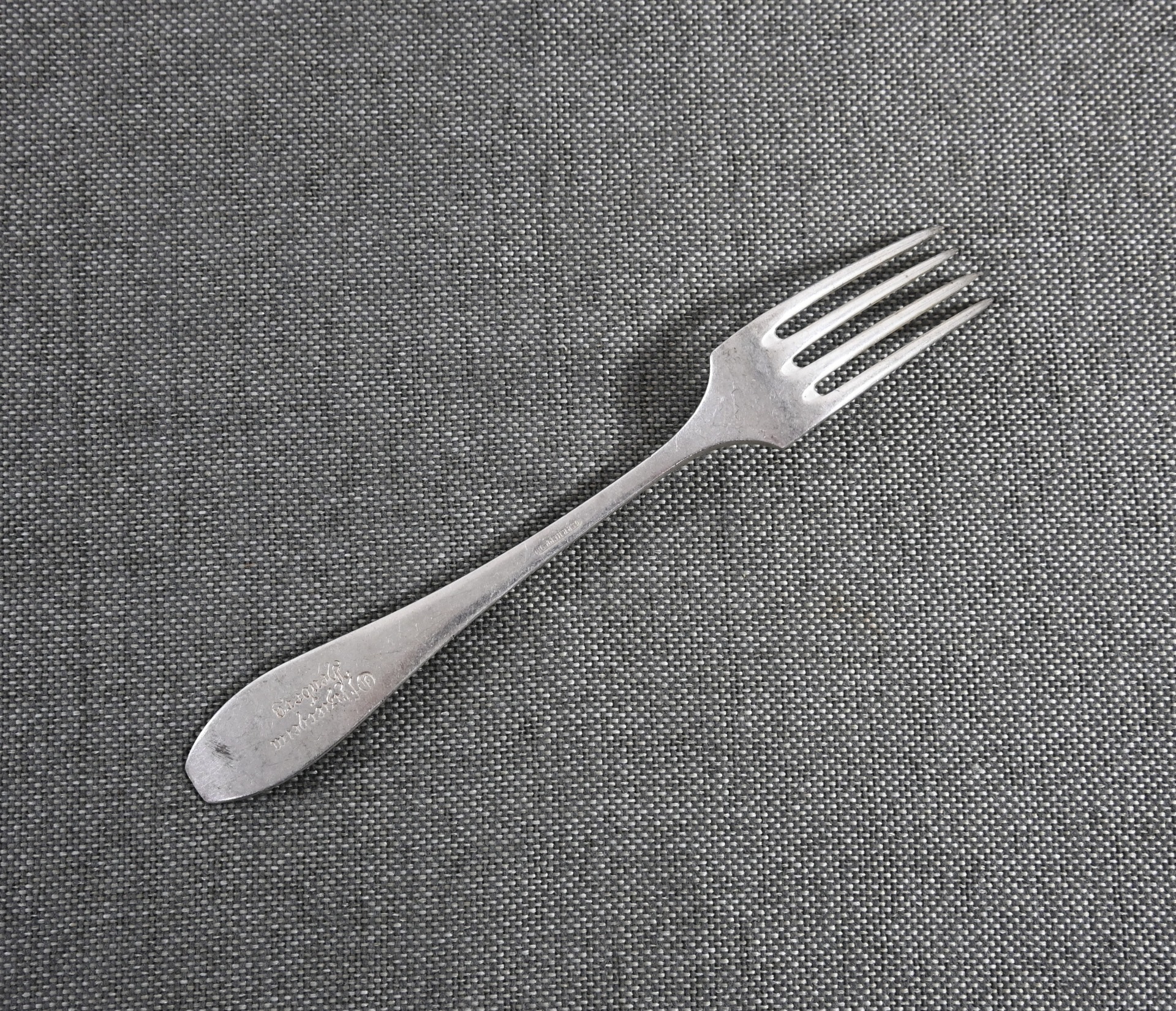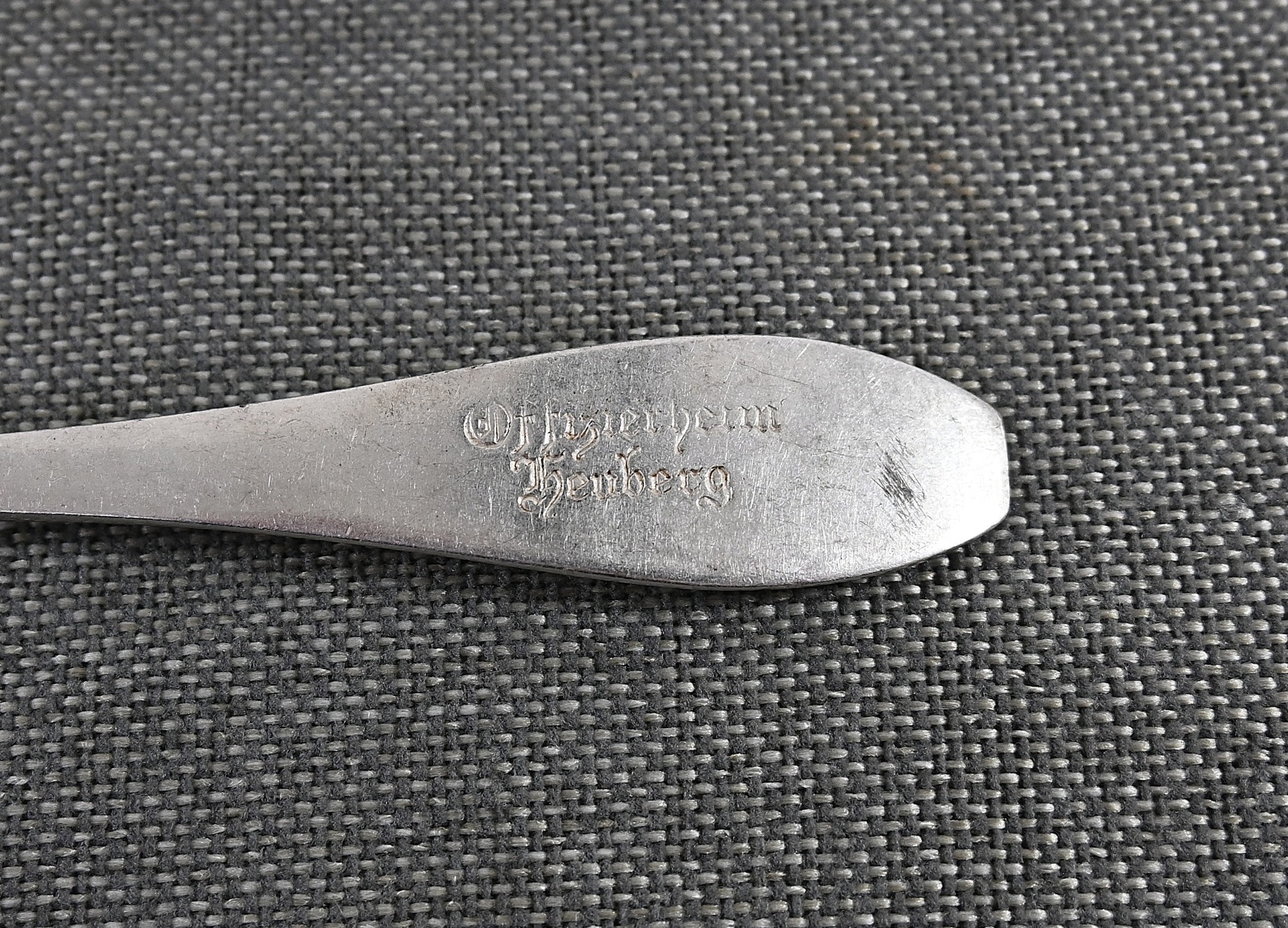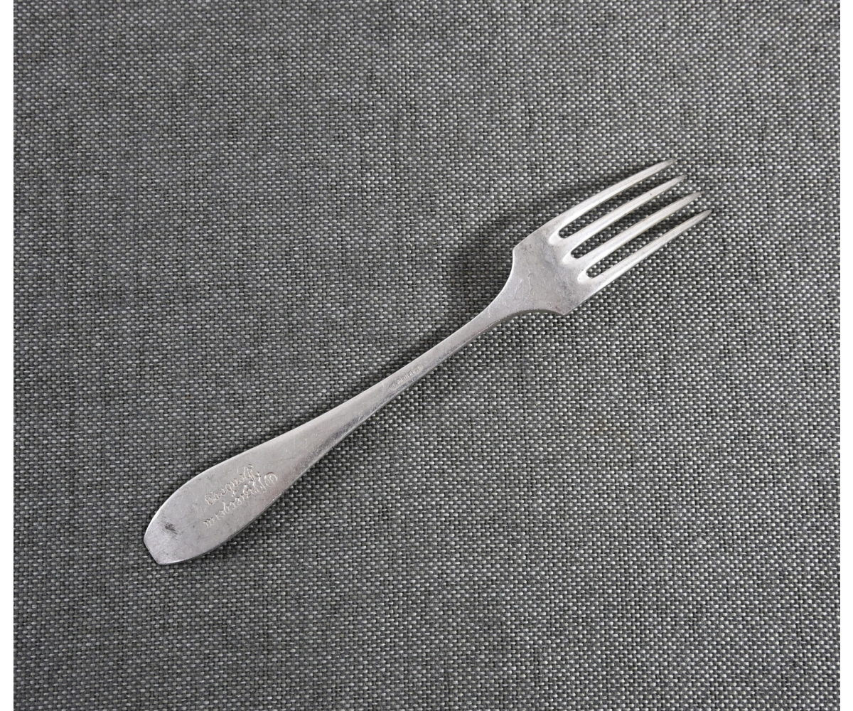 The fork is in excellent condition and shows some normal signs of use. The piece is nicely marked by 'Gebrüder Hepp' from 'Pforzheim', marked with the number '90', meaning it is silver-plated and marked 'Offizierheim Heuberg', meaning it was for officers' use in the officers quarters at a military base in 'Heuberg' (Germany).