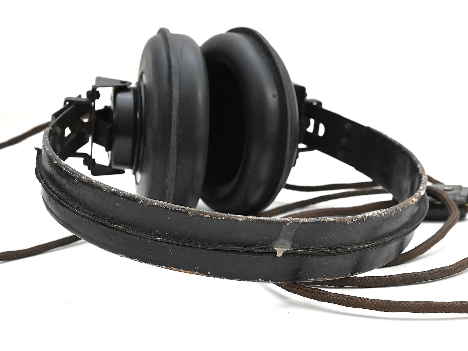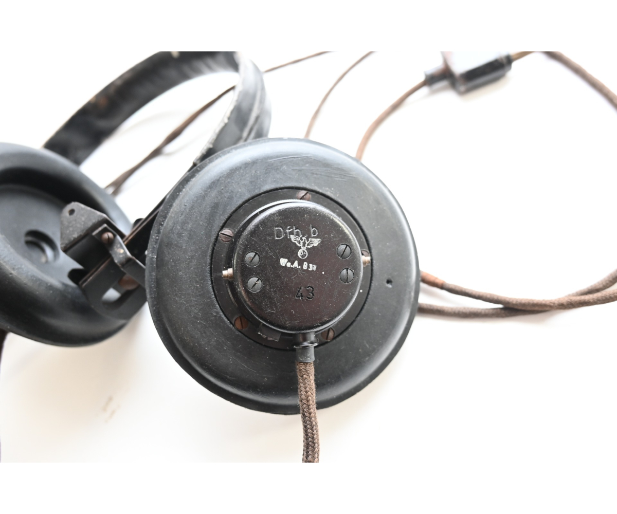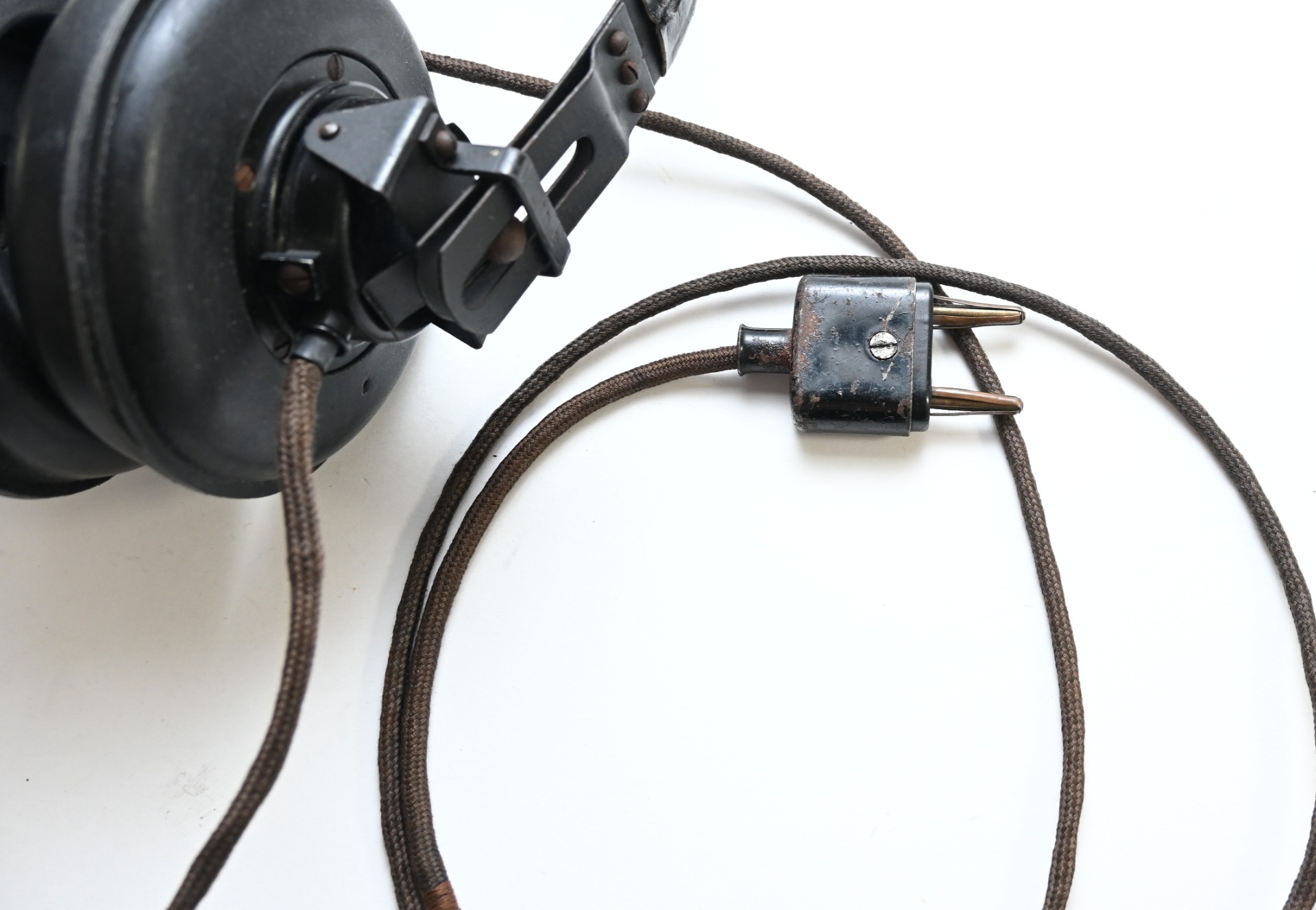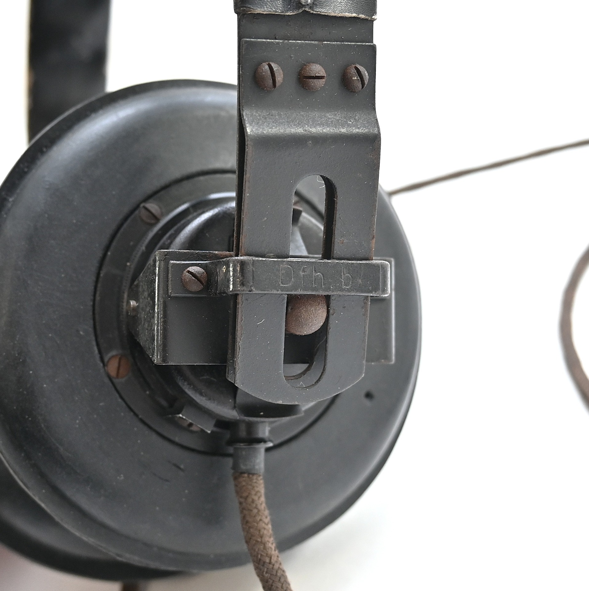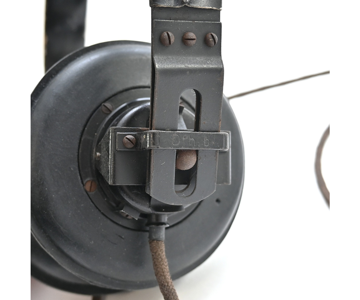 The headphones show overall normal signs of wear. Complete with original wire and plug. The headphones are marked, 'Dfh.b', 'WaA' and dated '1944'. The rubber earpads are still supple.