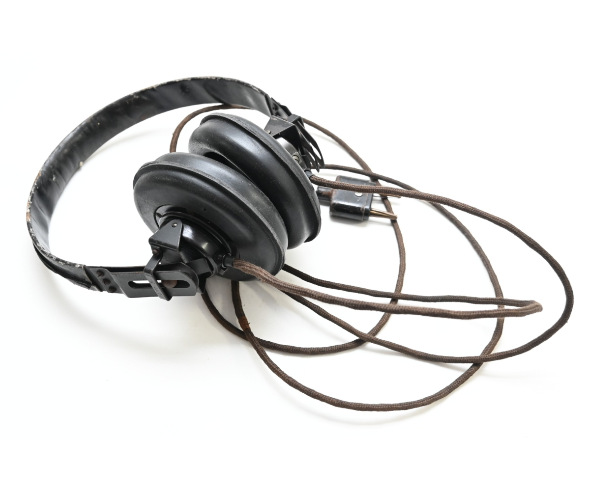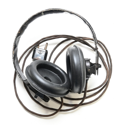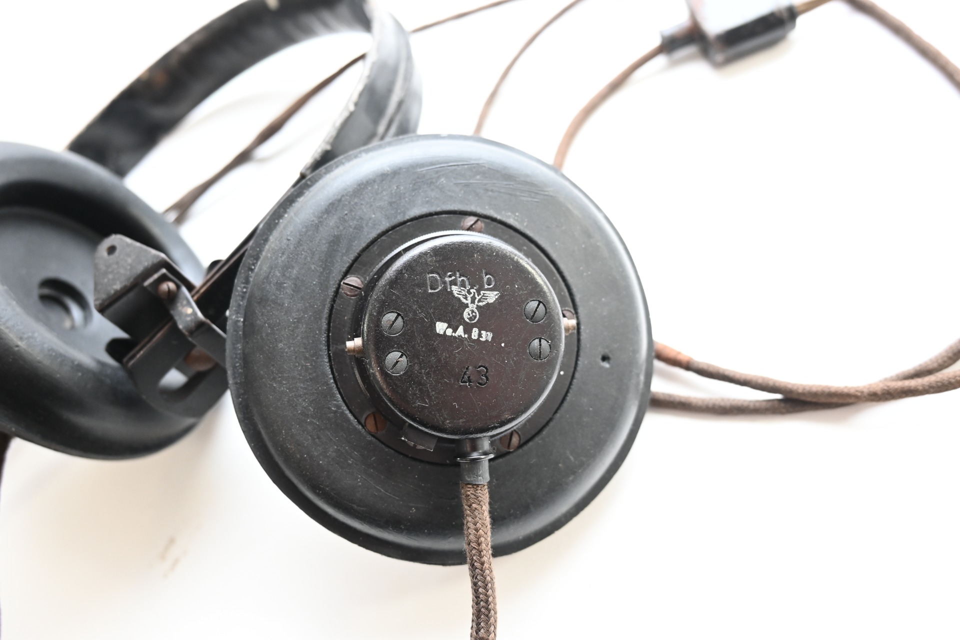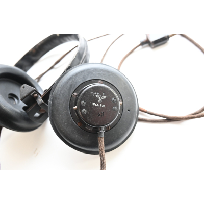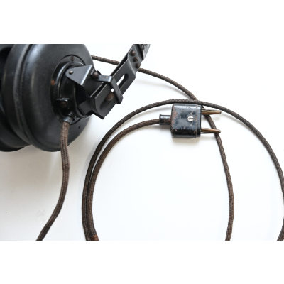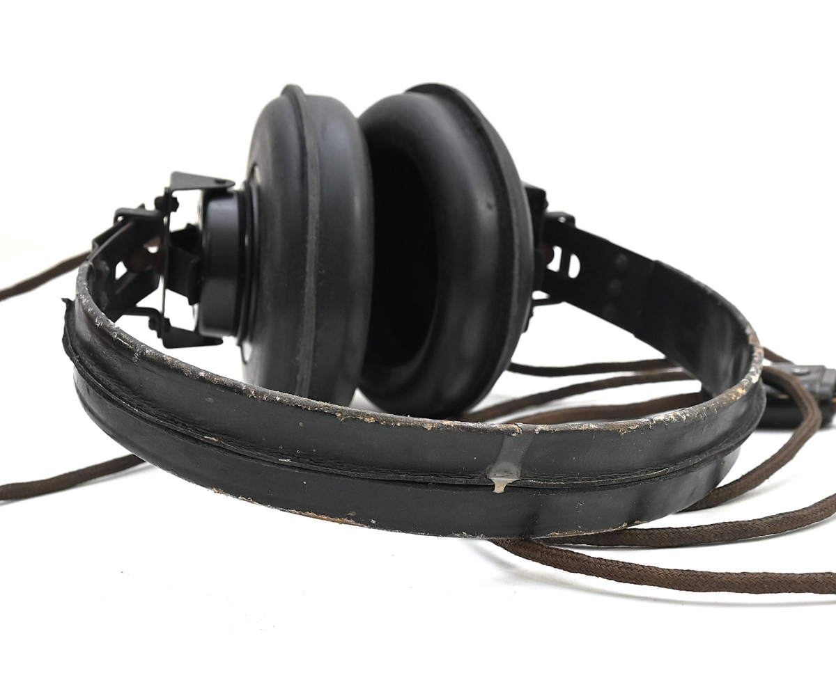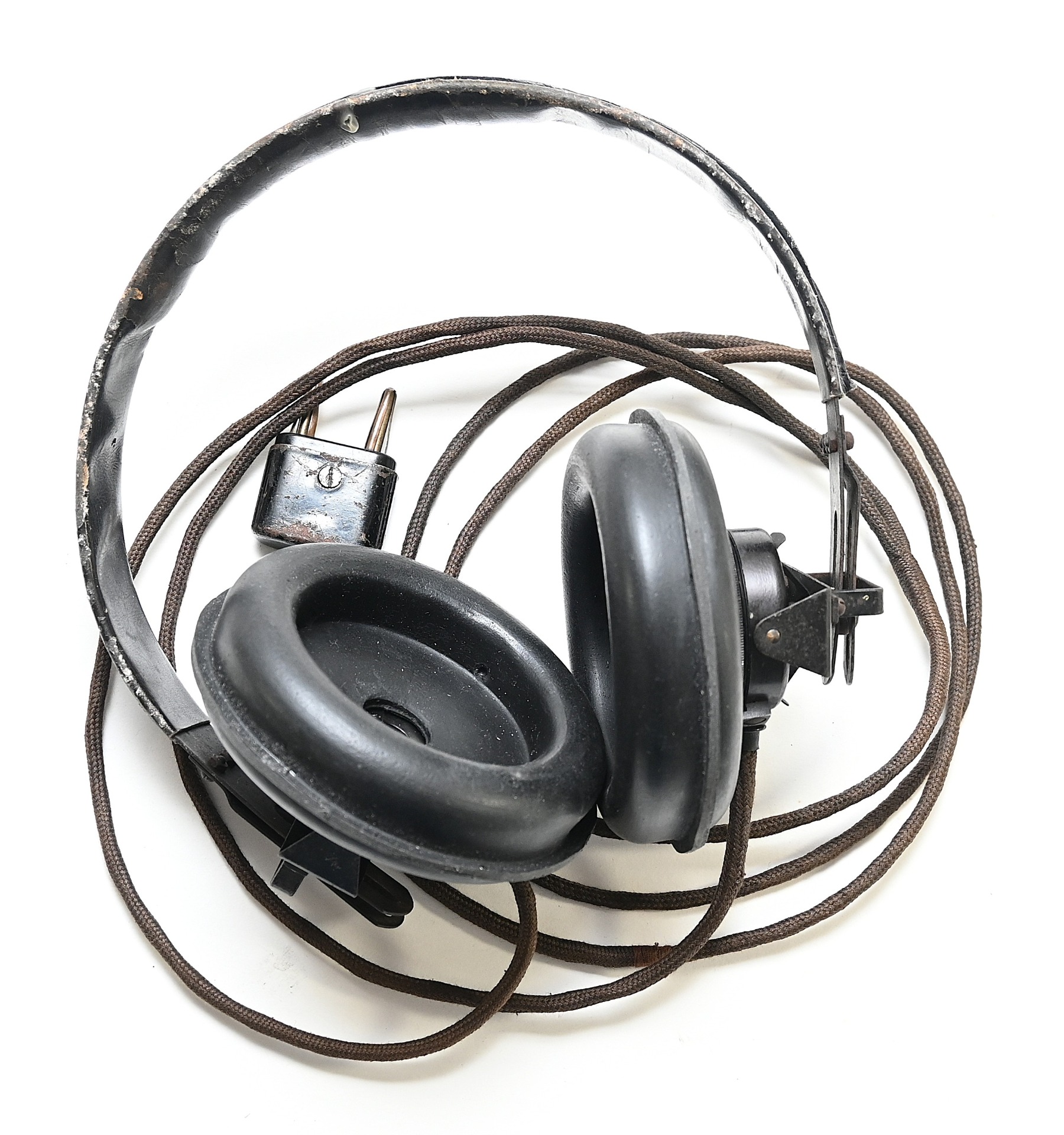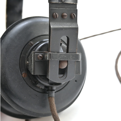 The headphones show overall normal signs of wear. Complete with original wire and plug. The headphones are marked, 'Dfh.b', 'WaA' and dated '1944'. The rubber earpads are still supple.