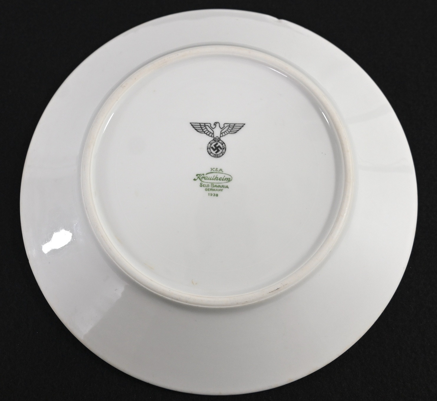 The plate shows normal signs of usage/scratches. Nicely maker marked with the Wehrmacht eagle, the maker 'K&A Krautheim' from 'Selb Bavaria' and date of production '1938'. The diameter is approx 23cms.