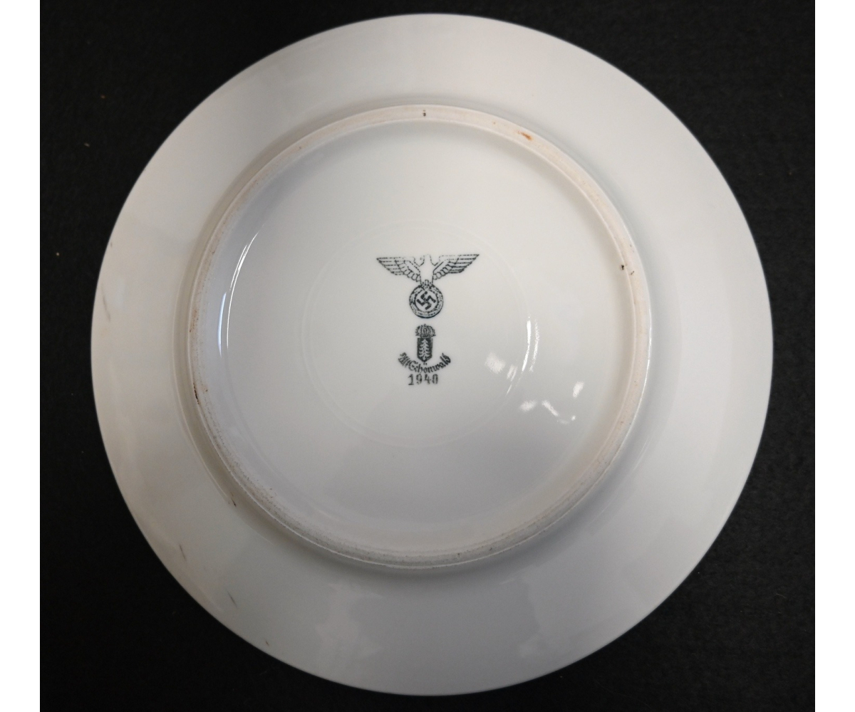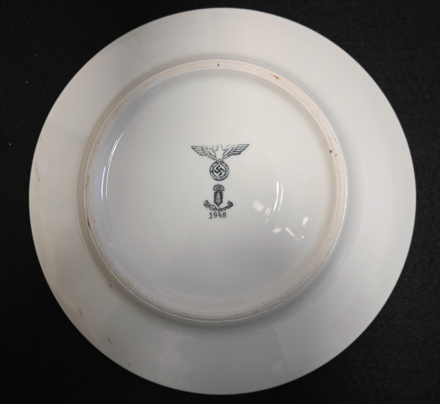 The plate shows normal signs of user scratches and some stains. It's nicely maker marked by 'Aktiengesellschaft Porzellanfabrik Schönwald', marked with the Wehrmacht eagle and dated '1940'. The diameter (approx): 24cm