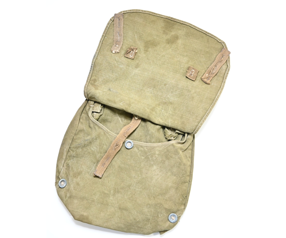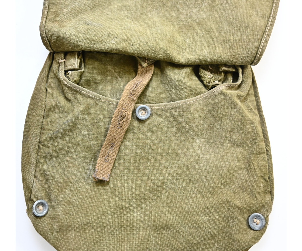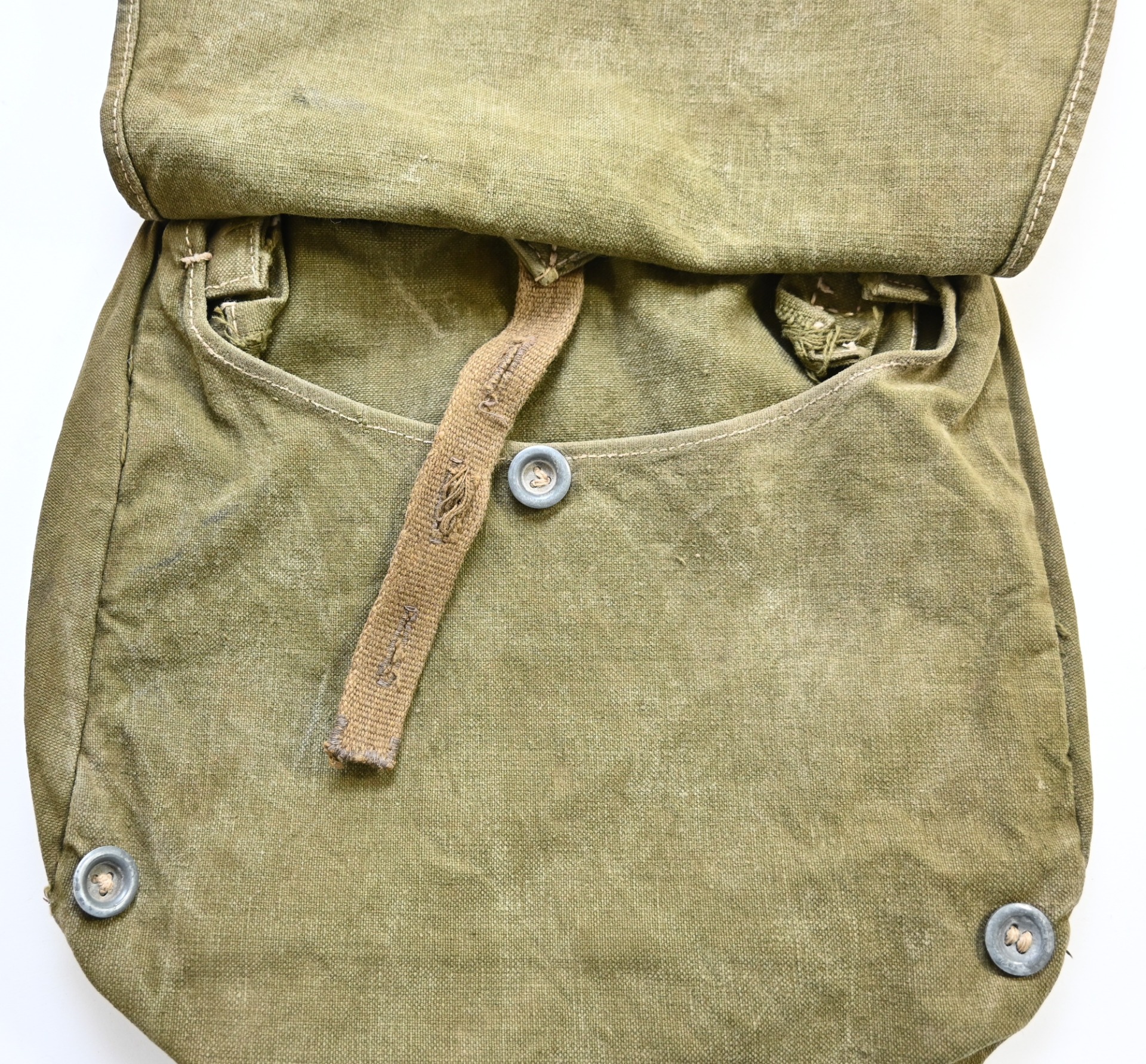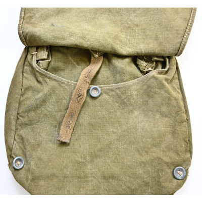The bag shows overall normal signs of wear. It's complete with all buttons and webbing straps.