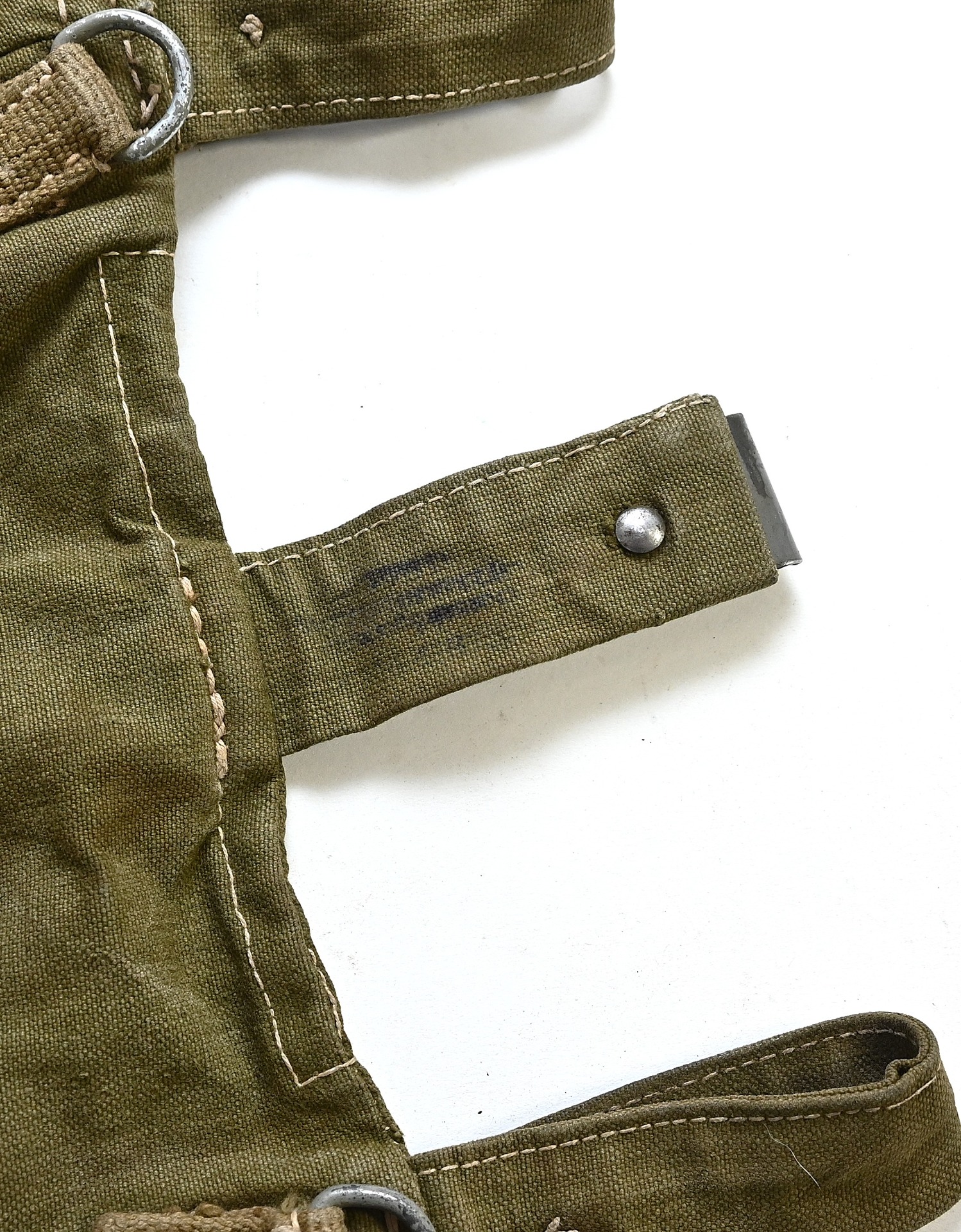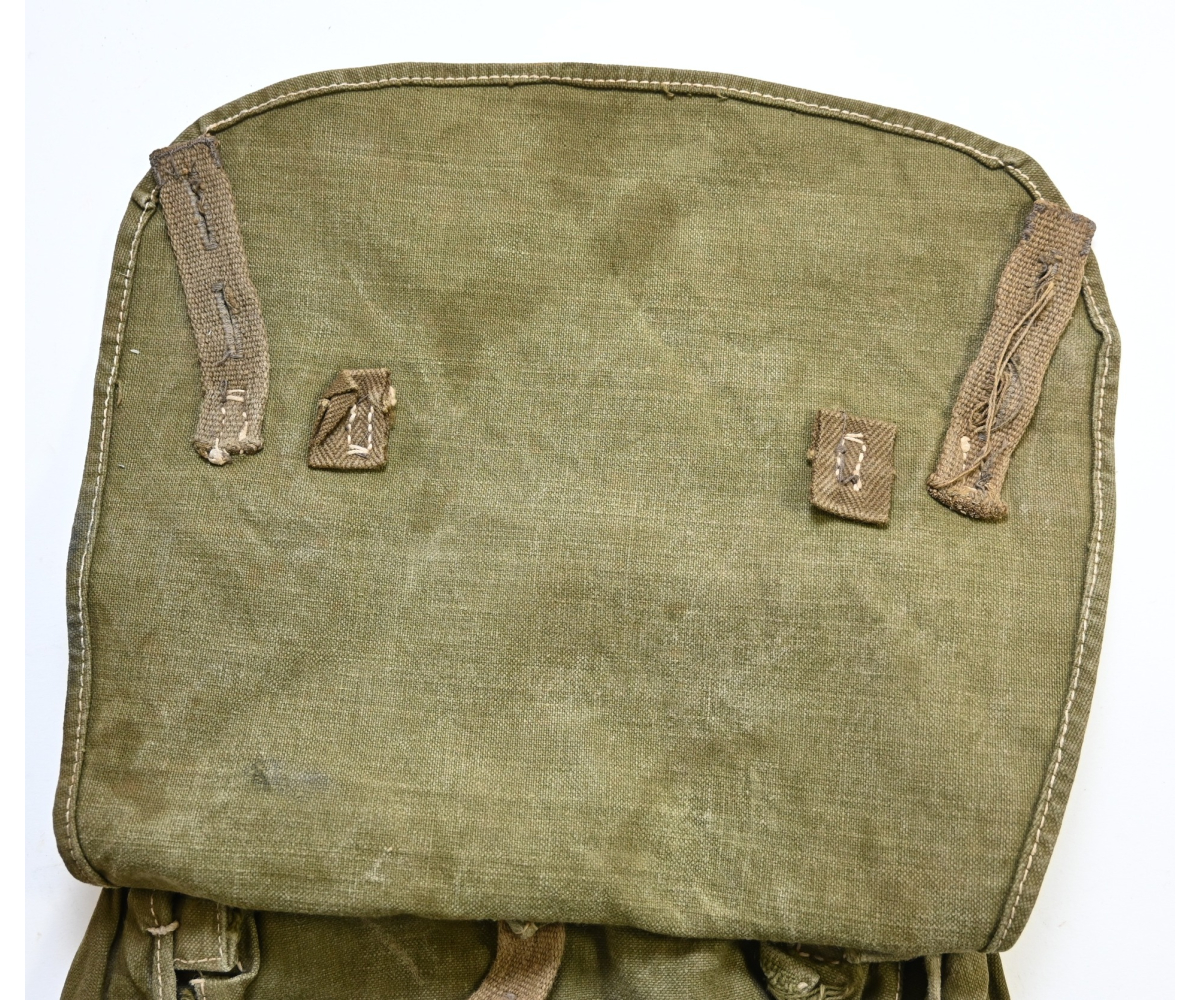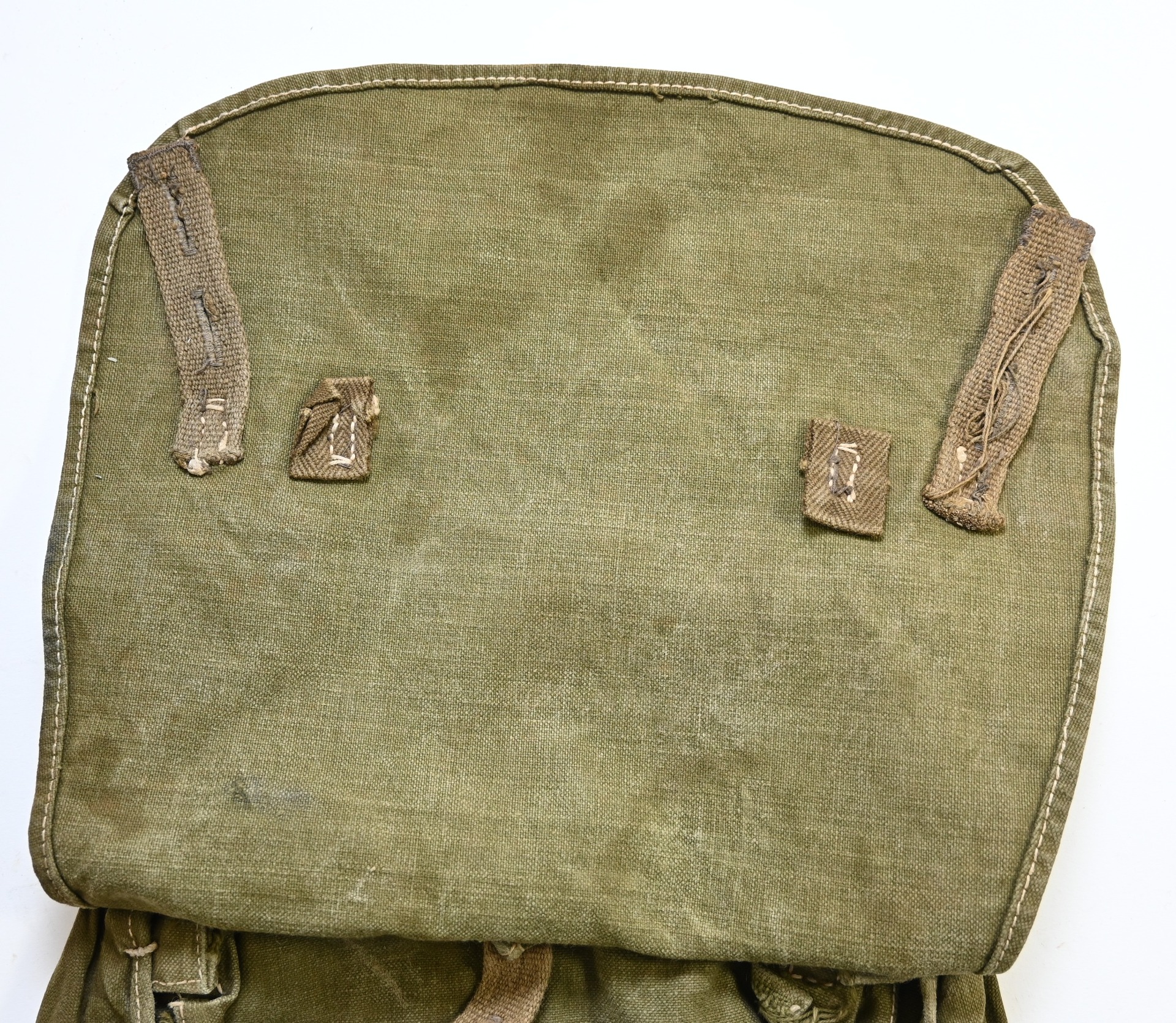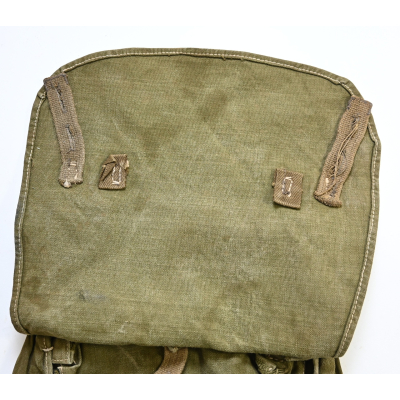 The bag shows overall normal signs of wear. It's complete with all buttons and webbing straps.