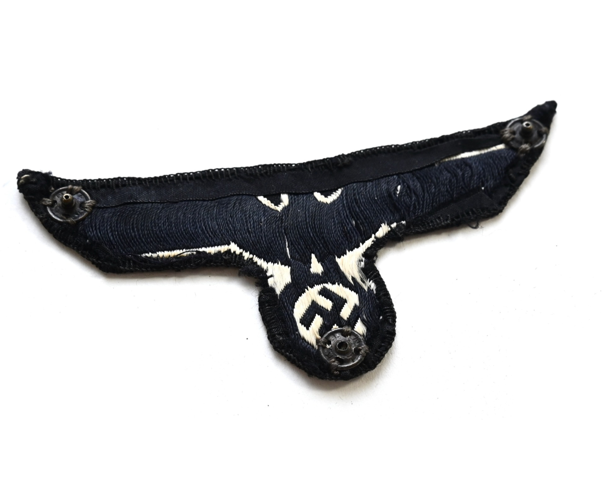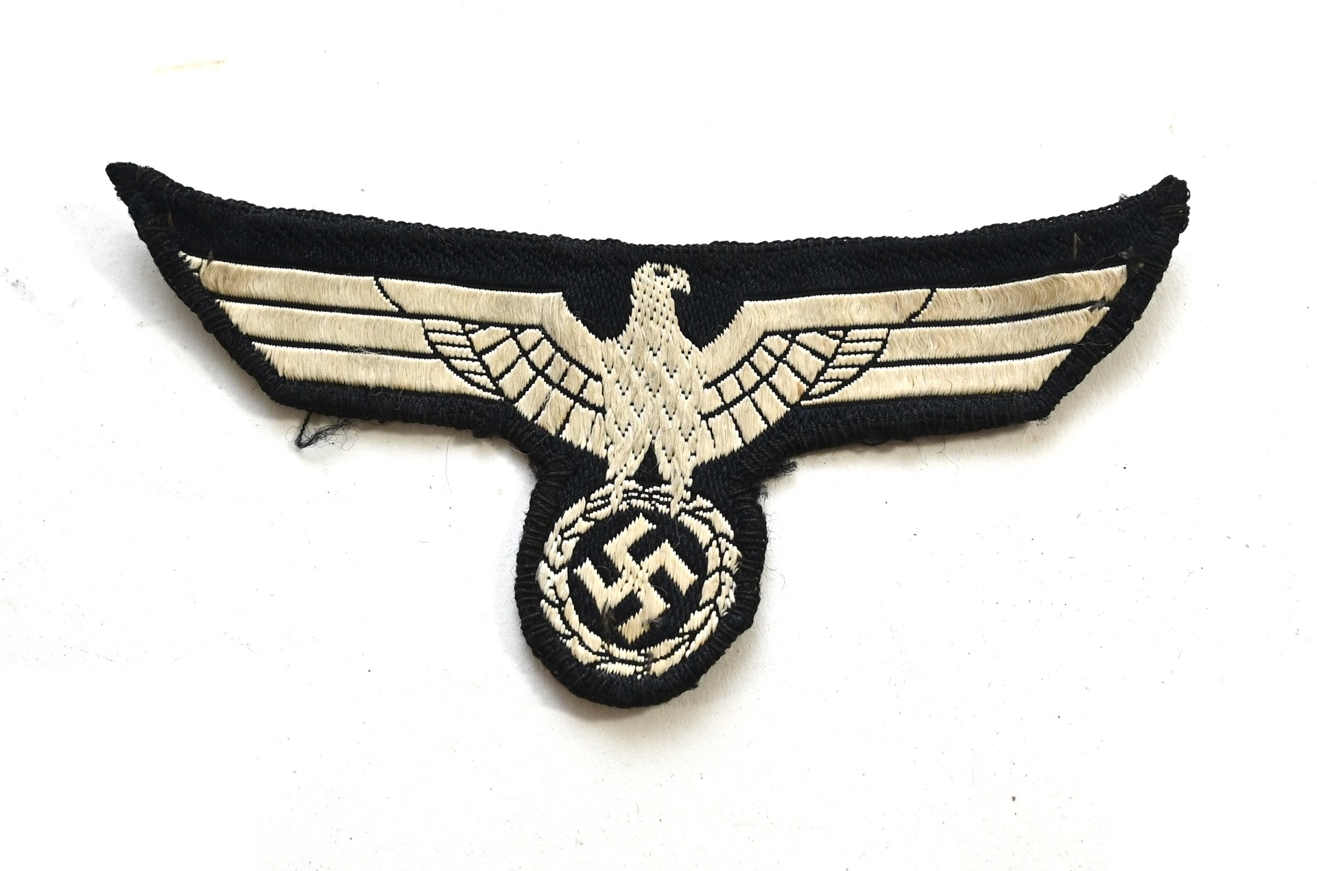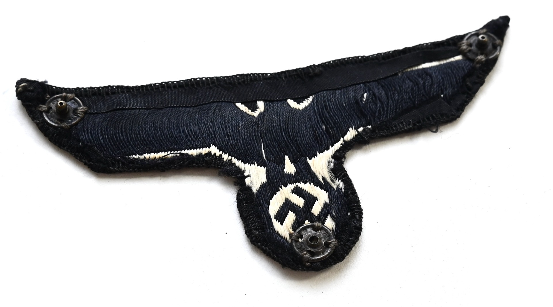 The white breast eagle (similar to the general Wehrmacht M37-Pattern) on a black background was used on the Wehrmacht Panzer Wrap or 'Feldjacke'.