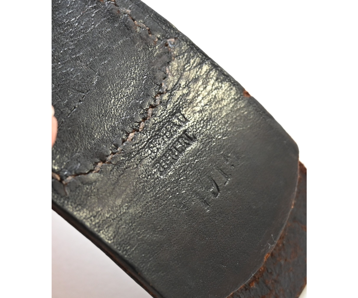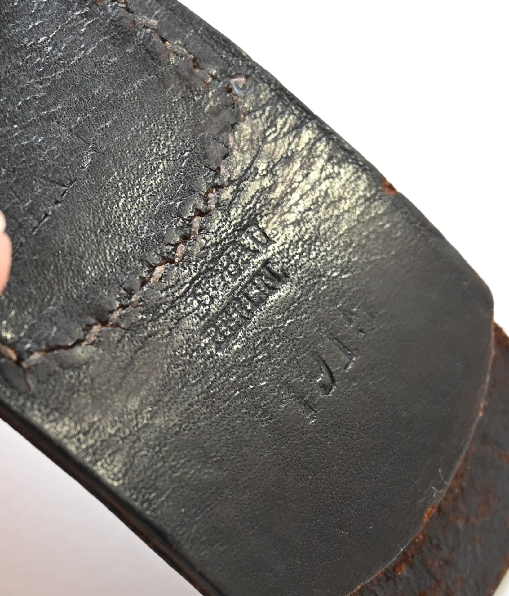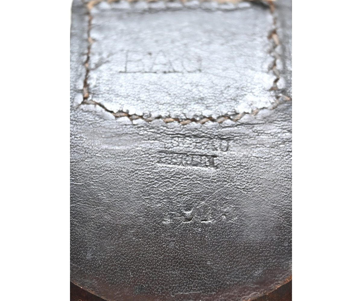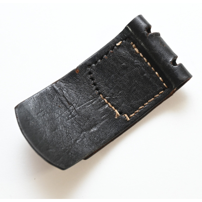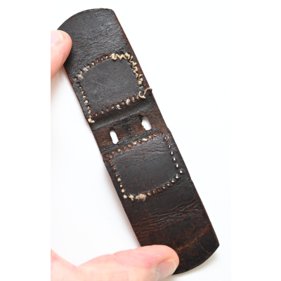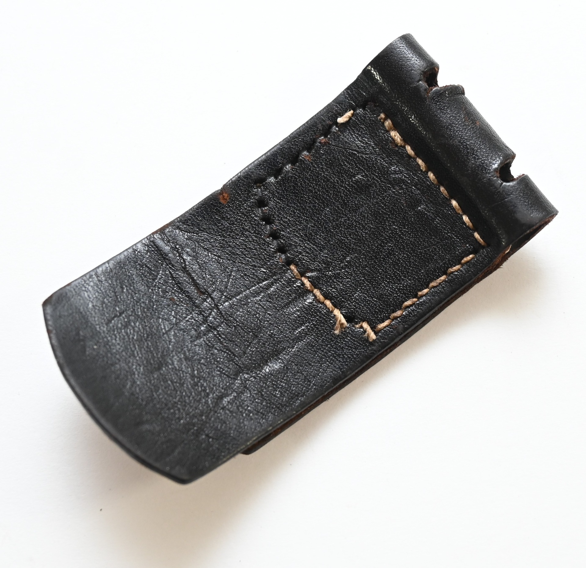 The tab shows overall normal signs of use. The leather is pretty supple and solid. Marked by a maker from Berlin. It's dated 1915.
